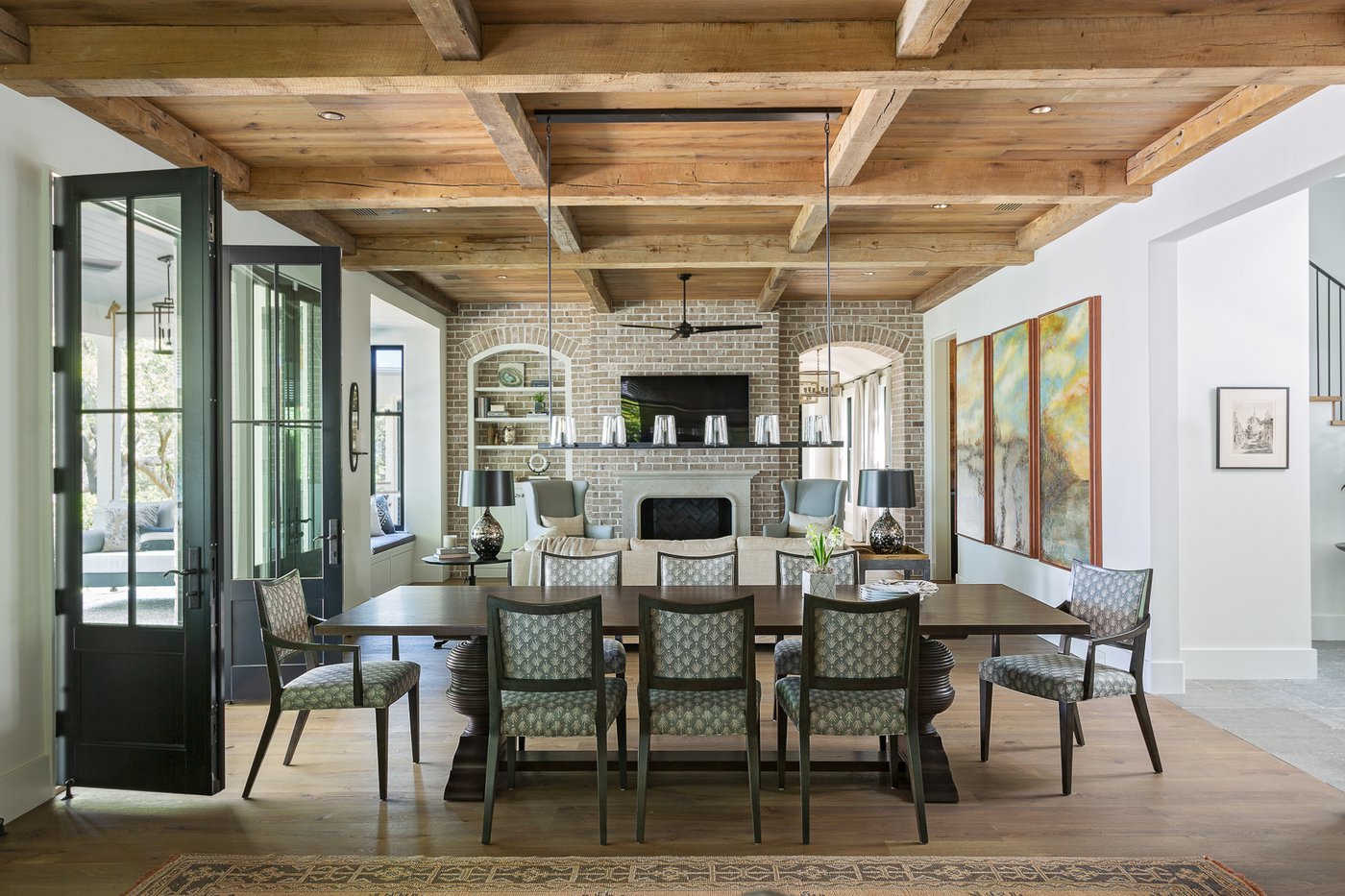 Le perfette proporzioni degli ambienti, i giochi di prospettiva e la continuità cromatica tra le diverse stanze accompagnano la vista dall’interno all’esterno, trasmettendo sensazioni di grande accoglienza e ricercatezza. Legno, pietra, mattoni a faccia vista e materiali naturali sono protagonisti di questa villa country chic.