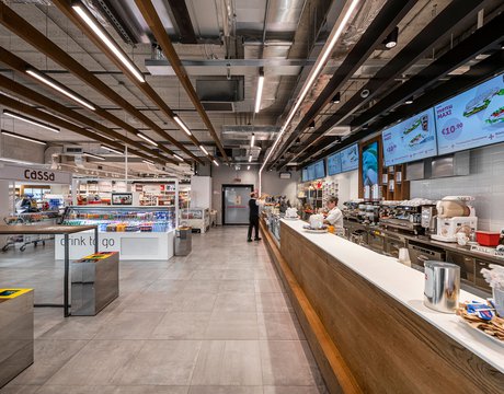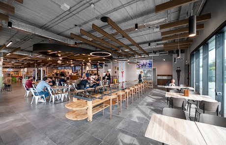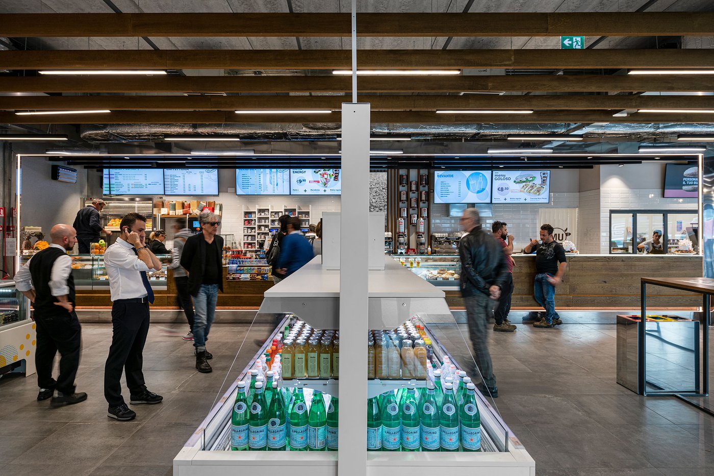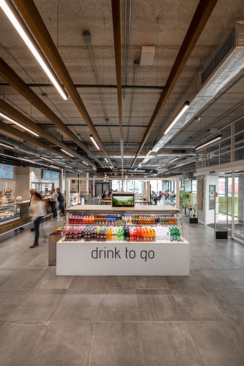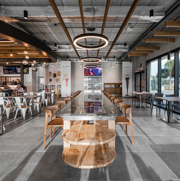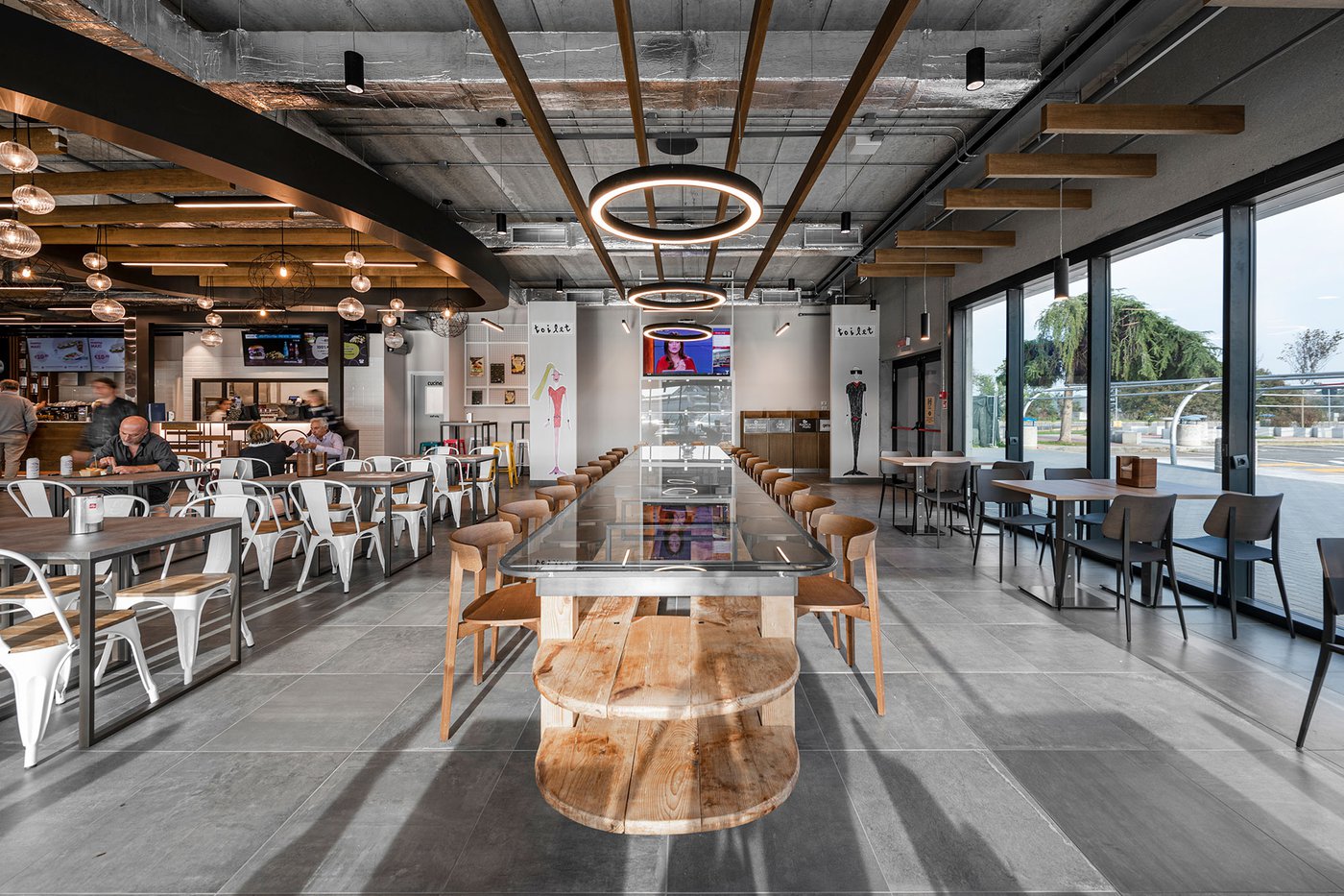 Le piastrelle effetto pietra di StoneOne, con il loro sapore materico e decisamente industrial, vengono proposte nell’area ristoro e shopping in accostamento a tavoli in legno naturale, sedute sgargianti, dettagli metal e isole digital, pensate per migliorare l’esperienza dei viaggiatori.