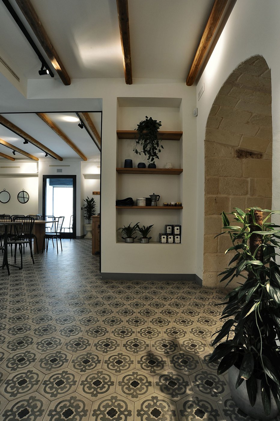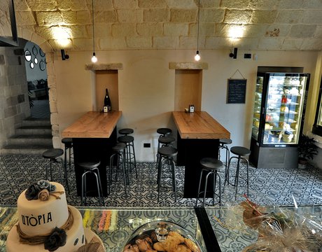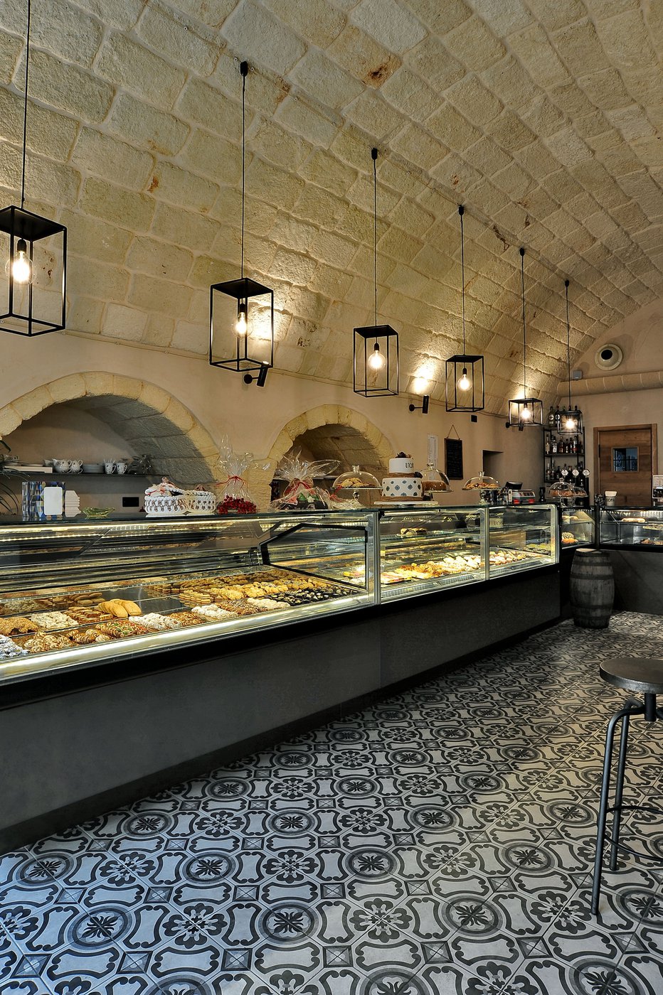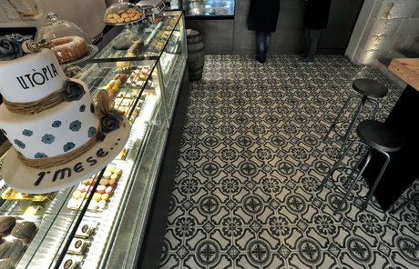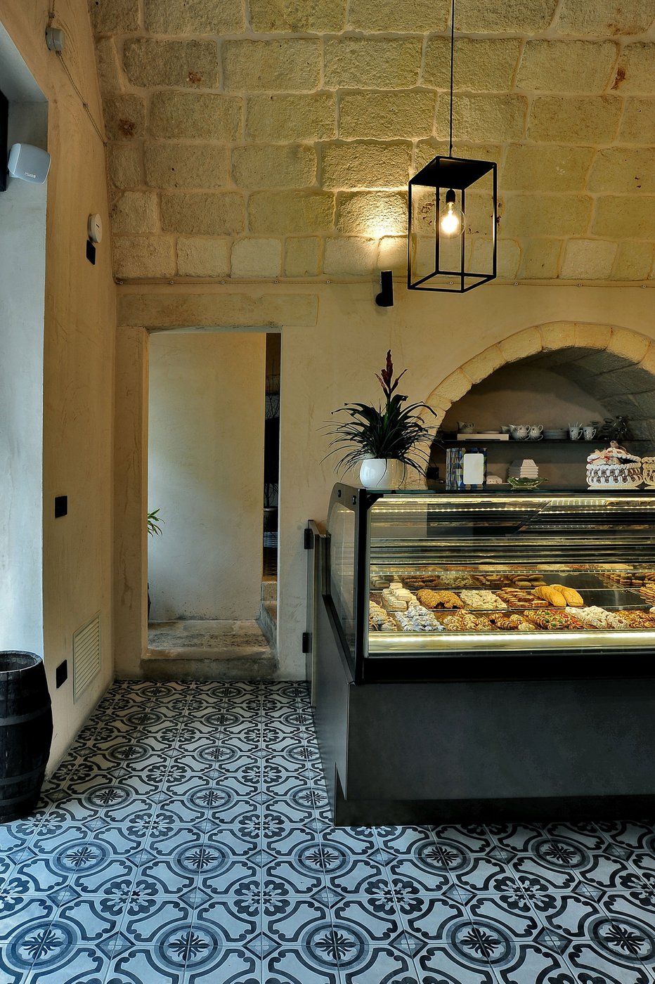 Il gres porcellanato effetto cotto di Terra è il protagonista indiscusso della Pasticceria Utopia, nei pressi di Lecce: le cementine quadrate ed esagonali impreziosiscono infatti tutti gli spazi interni del locale, donando loro un tocco elegante e moderno. All’ingresso e nella zona bancone l’elaborato decoro Giglio è posato a pavimento per valorizzare gli storici muri a faccia vista.