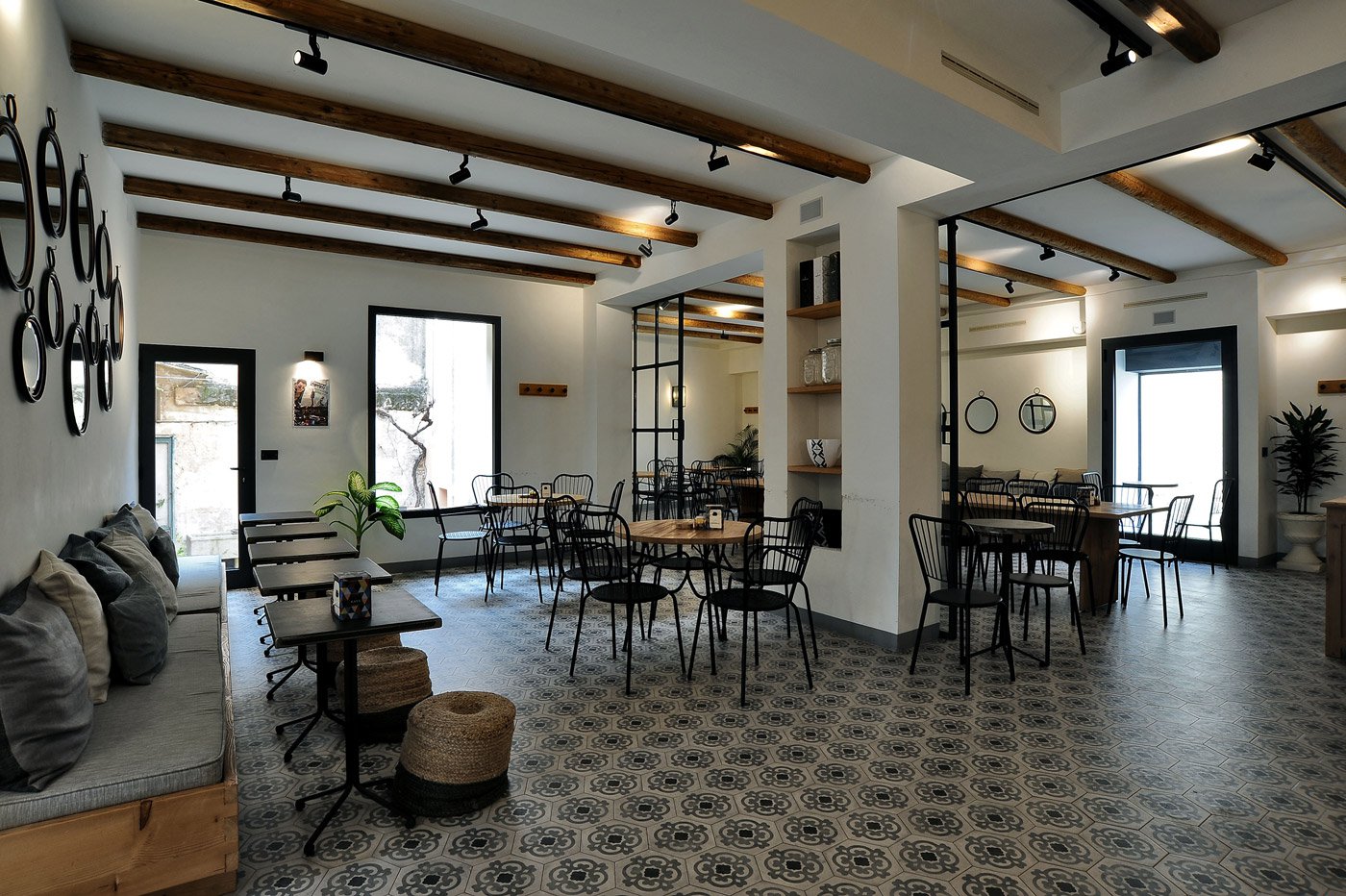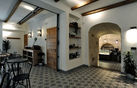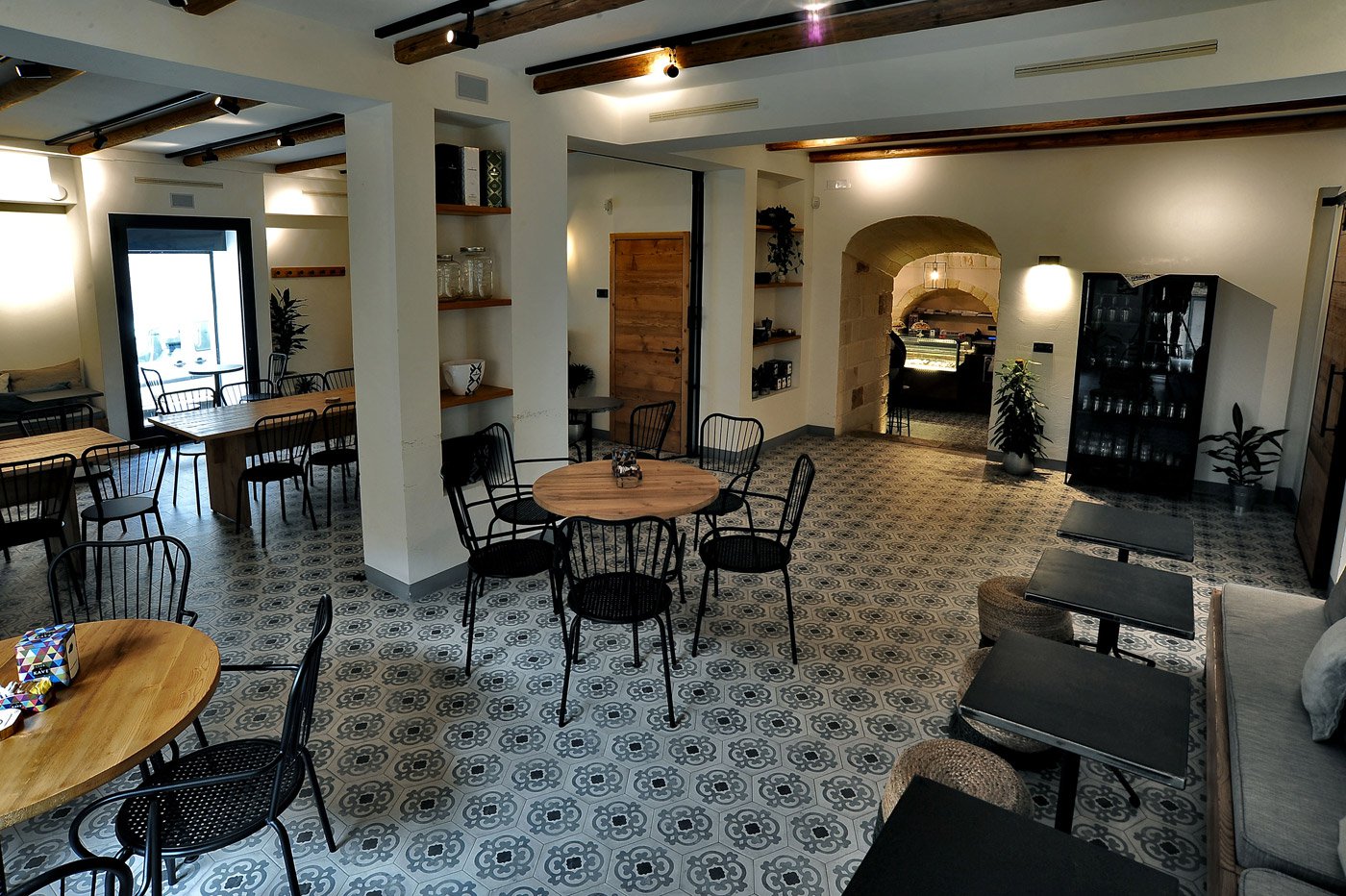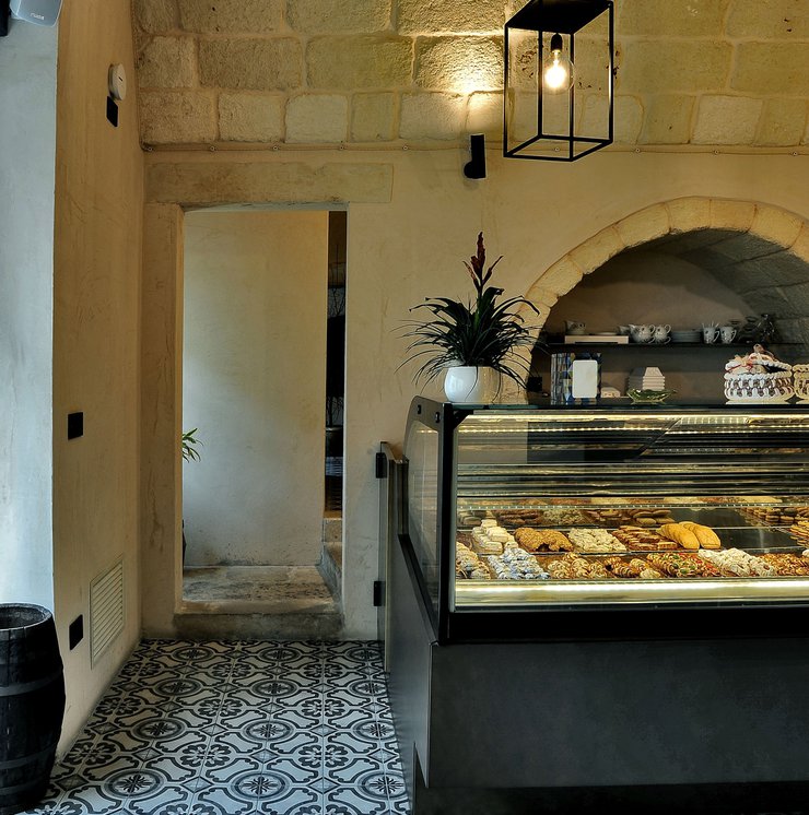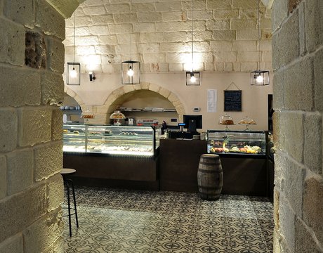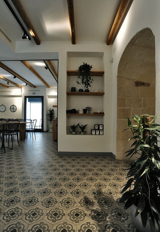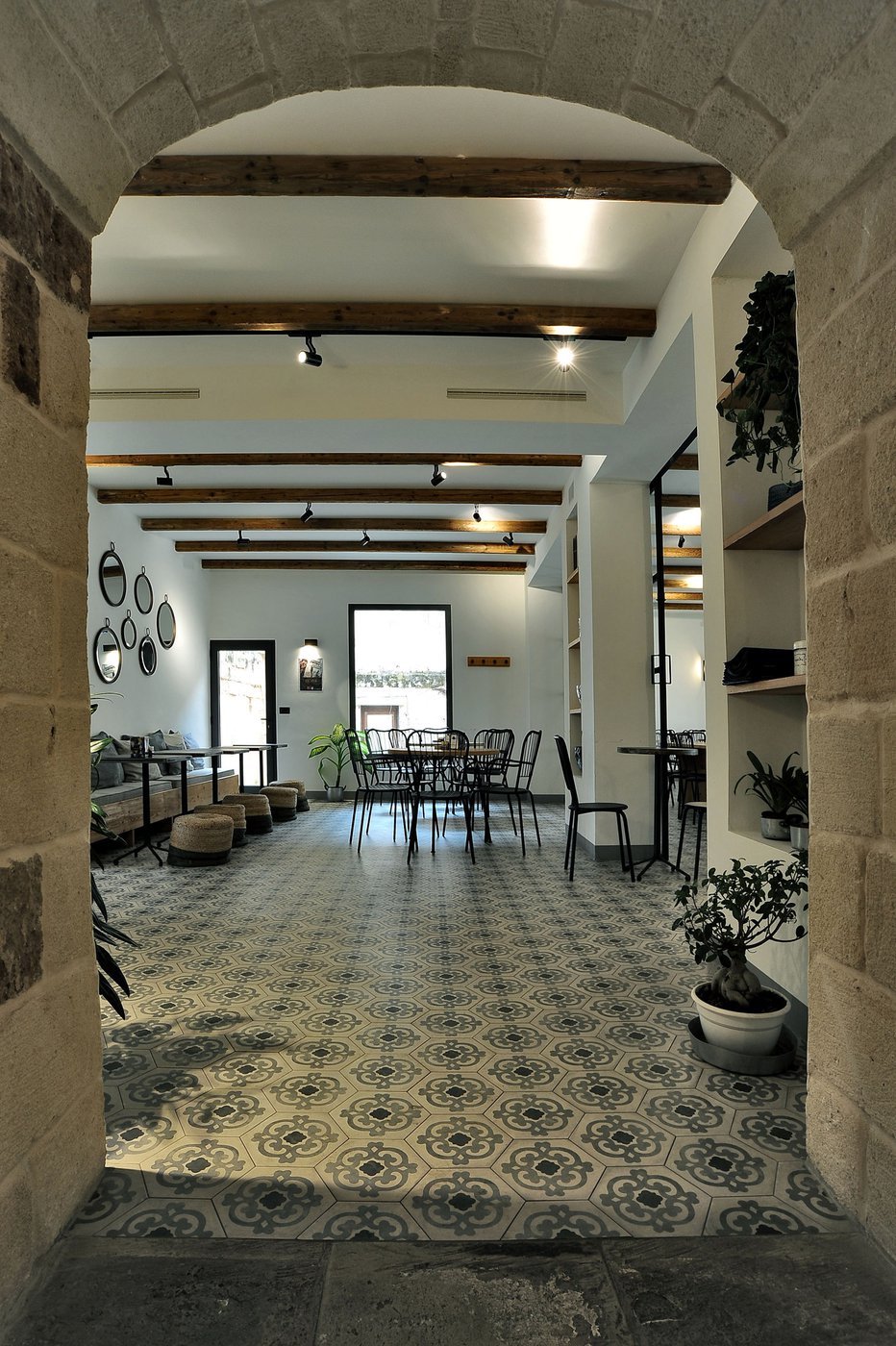 Il gres porcellanato effetto cotto di Terra è il protagonista indiscusso della Pasticceria Utopia, nei pressi di Lecce: le cementine quadrate ed esagonali impreziosiscono infatti tutti gli spazi interni del locale, donando loro un tocco elegante e moderno. All’ingresso e nella zona bancone l’elaborato decoro Giglio è posato a pavimento per valorizzare gli storici muri a faccia vista.
