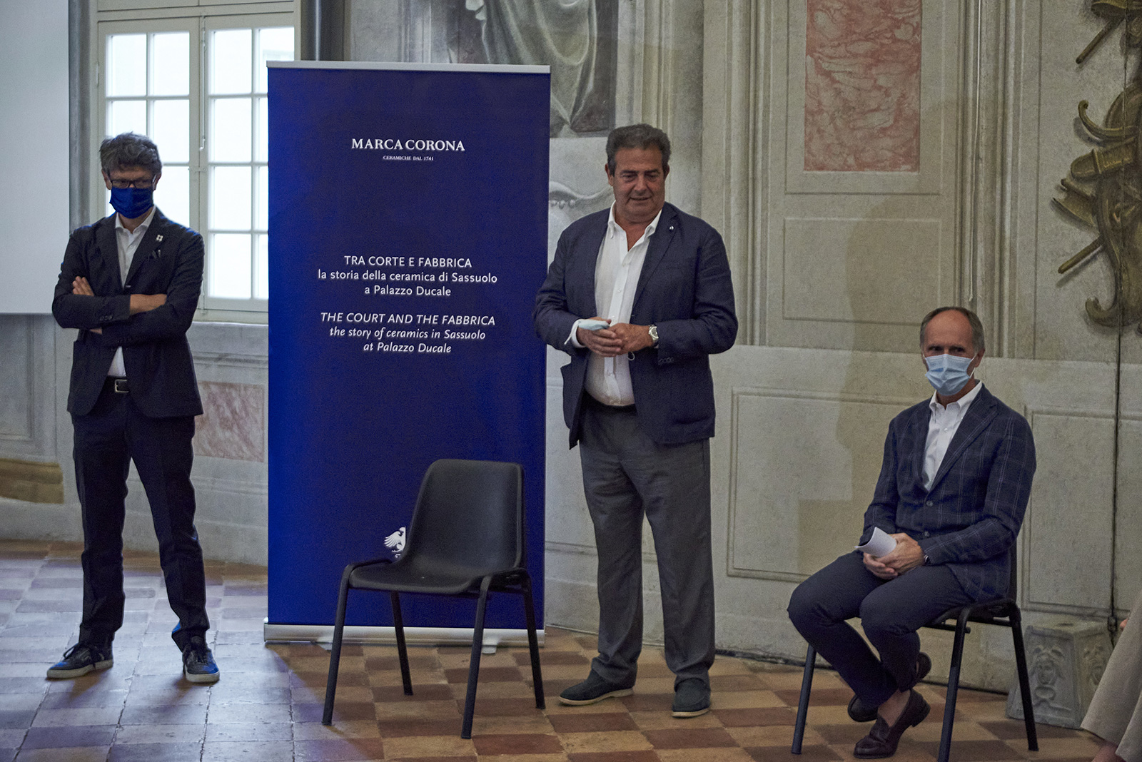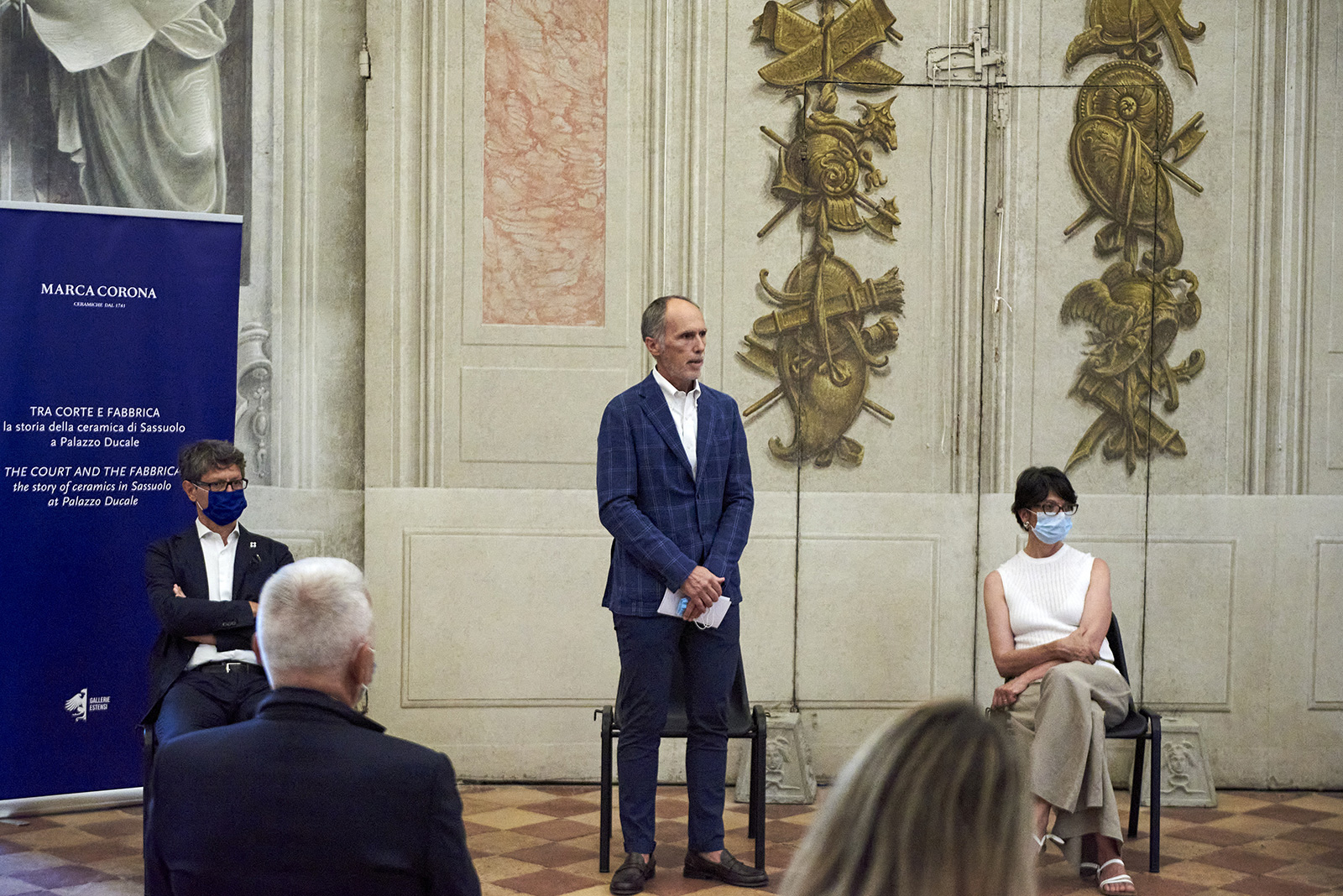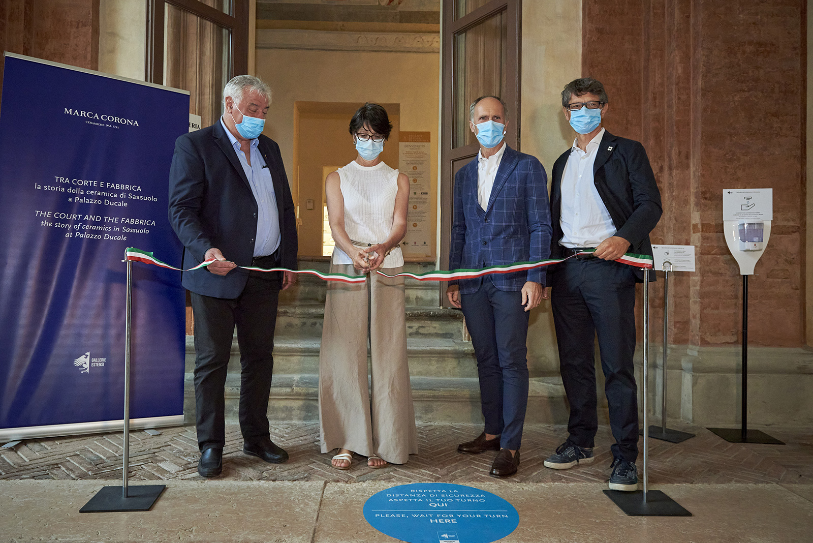 “The dual journey Between Court and Factory allows the public to get an in-depth and comprehensive view of the history of our district, combining a corporate genetic heritage with a private collection which represents the local production. Our late chairman Professor Cirillo Mussini, promoter of the Company Museum which was dedicated to him, would be proud of this initiative which enriches the historic value of our collection and further strengthens the partnership between Marca Corona and the local territory” declared Lelio Poncemi, Managing Director of Ceramiche Marca Corona, who attended the Inauguration event that took place on 24th July 2020 in the presence of Local Authorities.