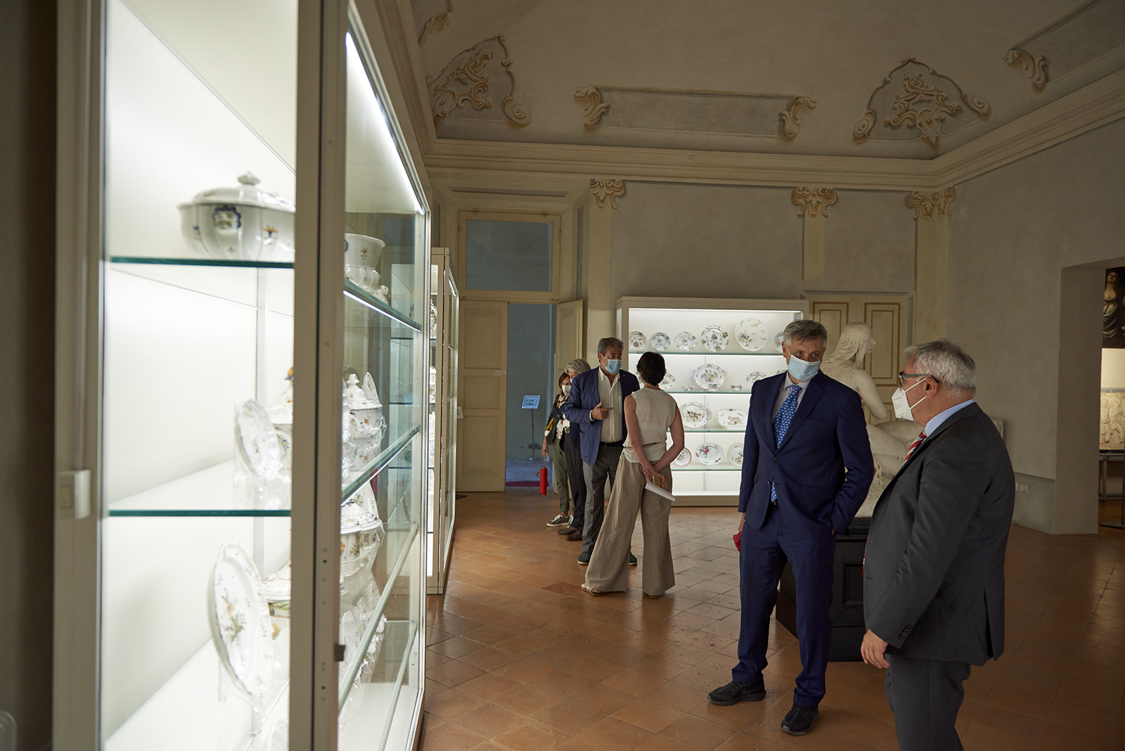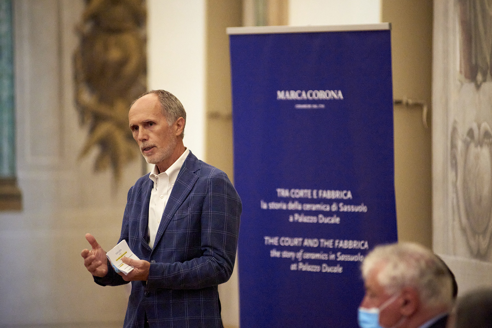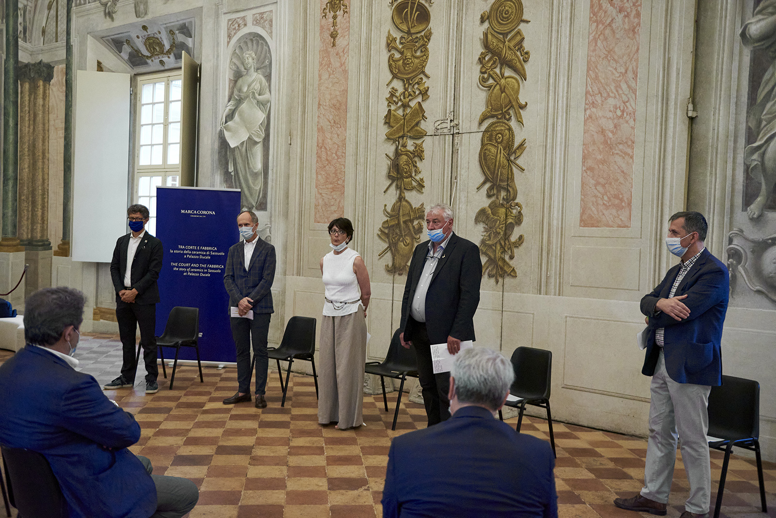“The dual journey Between Court and Factory allows the public to get an in-depth and comprehensive view of the history of our district, combining a corporate genetic heritage with a private collection which represents the local production. Our late chairman Professor Cirillo Mussini, promoter of the Company Museum which was dedicated to him, would be proud of this initiative which enriches the historic value of our collection and further strengthens the partnership between Marca Corona and the local territory” declared Lelio Poncemi, Managing Director of Ceramiche Marca Corona, who attended the Inauguration event that took place on 24th July 2020 in the presence of Local Authorities.