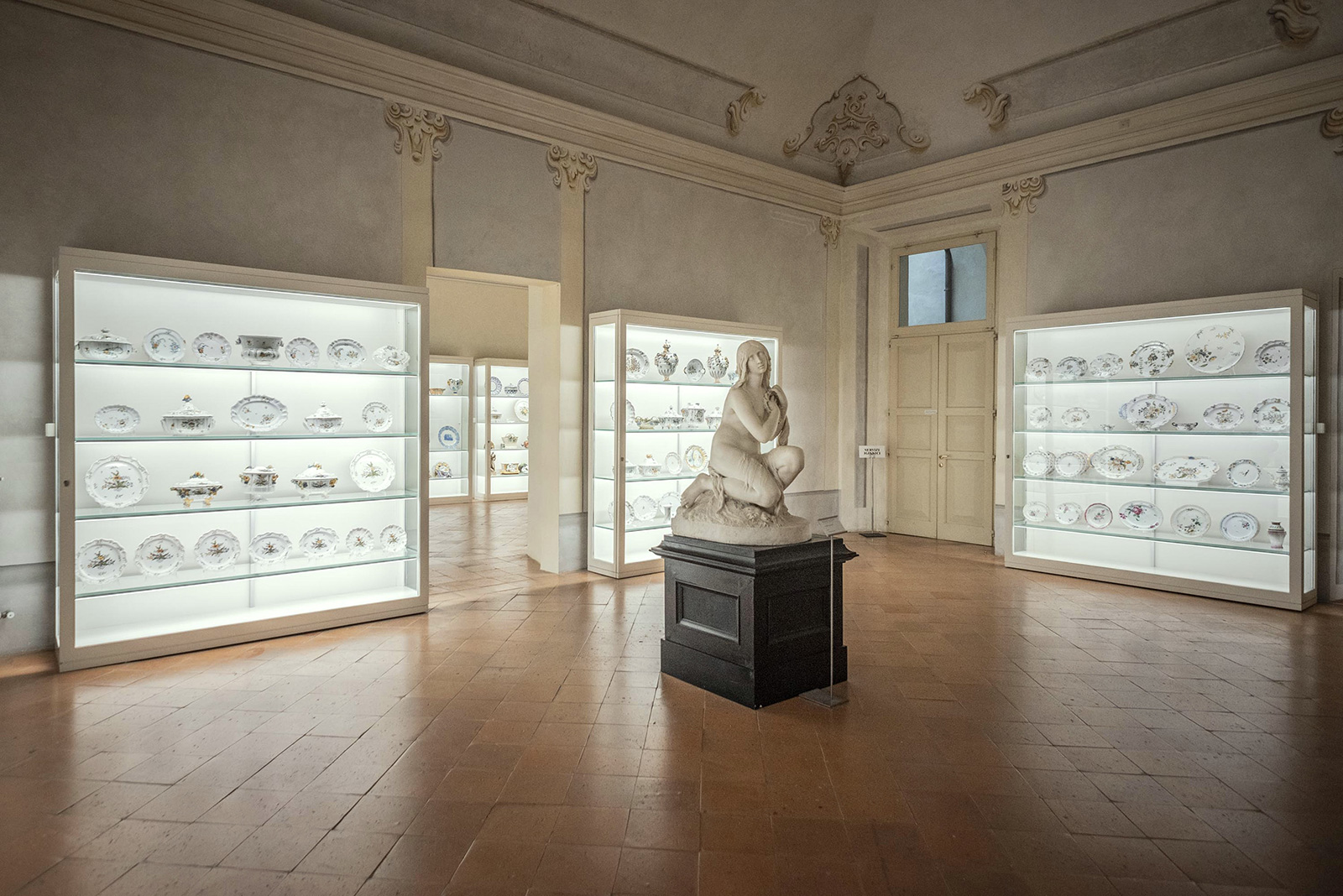 As you move through the rooms, you’ll see thirteen display-cases filled with precious objects. These reveal the stylistic and technological developments of the first manufactory to be founded in Sassuolo.