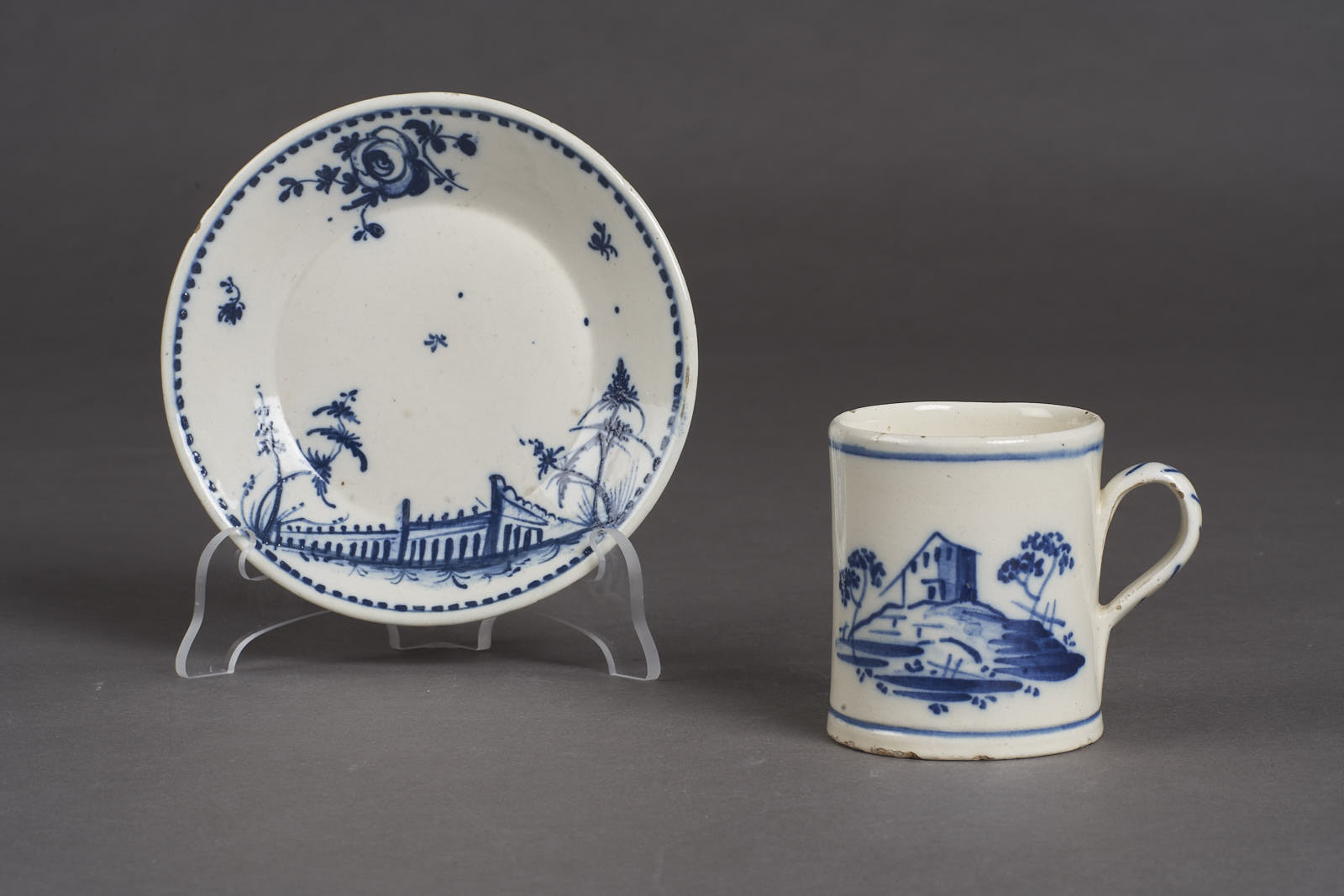 We see this in these plates and cylindrical cups, which form part of elegant table services decorated with interwoven white and blue flowers, with eighteenth-century chinoiserie, neoclassical festoons or landscapes.