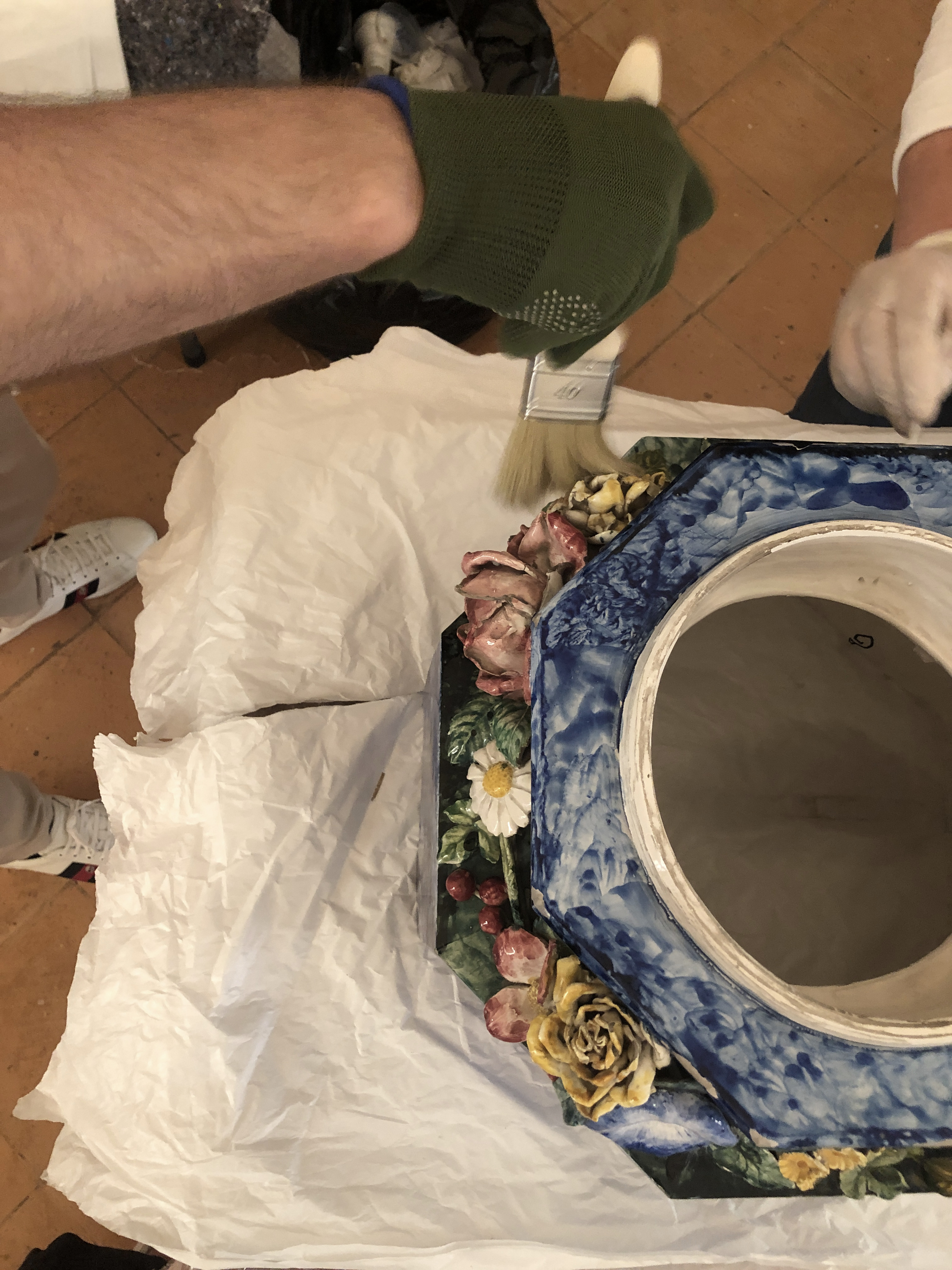 The count called in modellers and painters who had partly trained at Modena’s Academy of Fine Arts and proposed materials that recent studies have shown to be among the best in Italy. The same applies for glazes, in particular white, which, due to the high quality of the lead, achieved a brightness that made it famous.