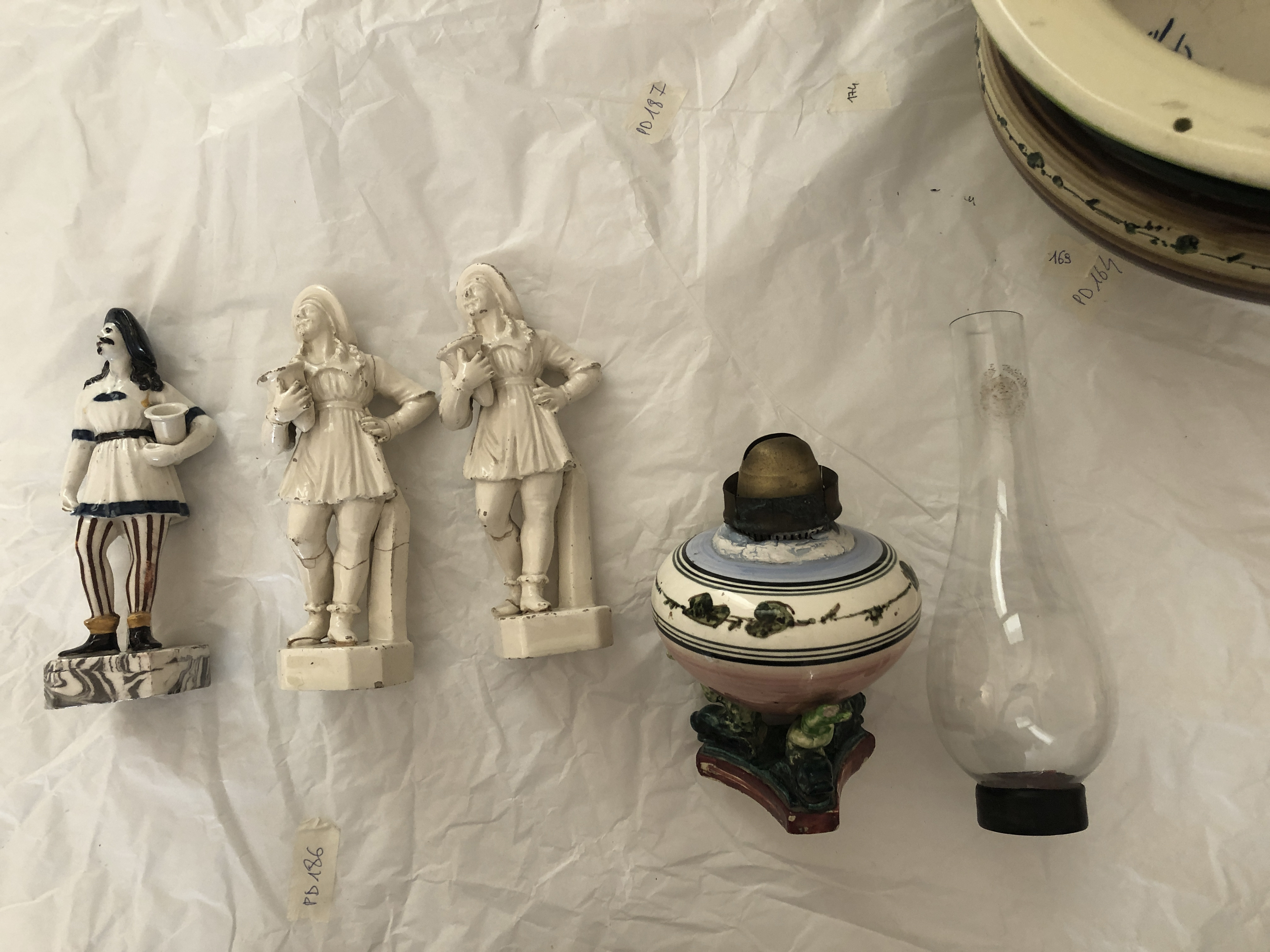 Night lamp in three parts, earthenware, second quarter of the 19th century