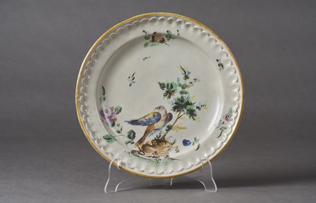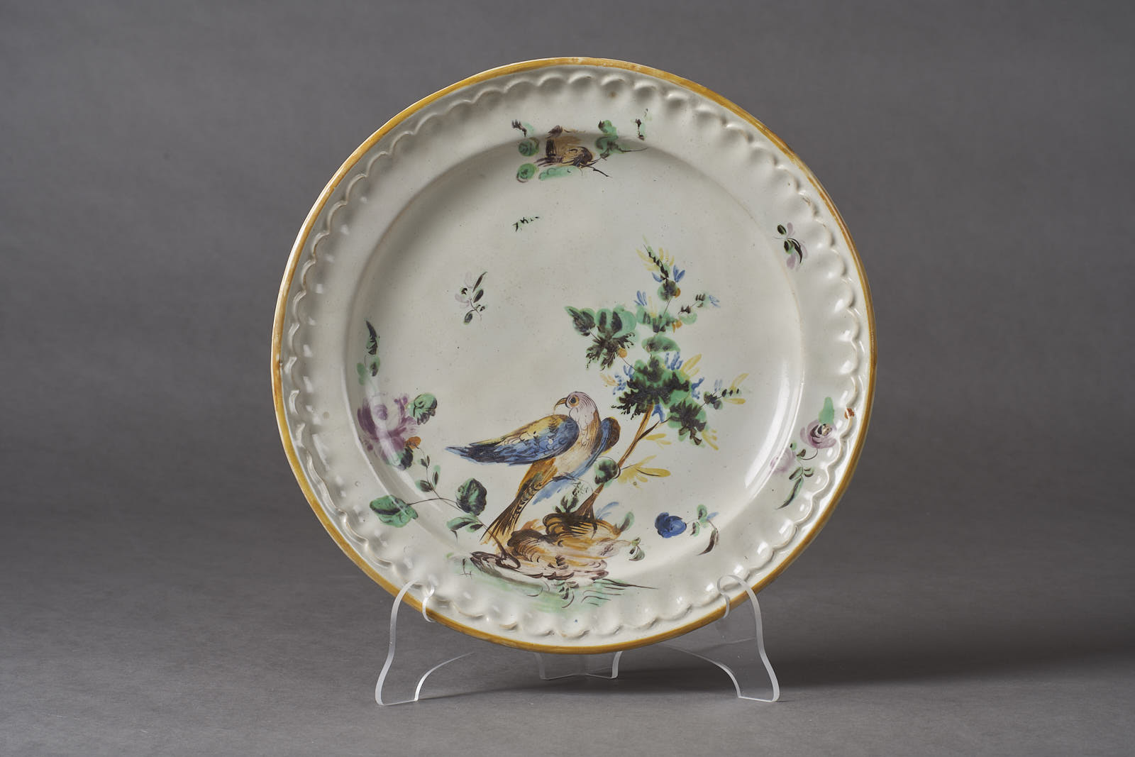 The Ferrari Moreni catalogue lists products that are linear, sober and elegant, in line with the tastes of the archducal family. This plate, originally accompanied by an elliptical soup dish, perhaps formed part of a confinement service.