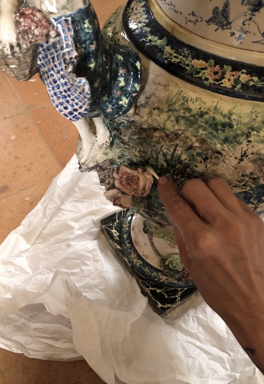 Even more interesting is the client: the Foresti family of Carpi were nobles but later became industrialists and important landowners. To this family was born Pietro, a well-known art collector, whose beautiful home in Carpi still stands today. This column comes from there, as noted in an inventory dated ‘1893 - A column with a large vase from the Rubbiani factory in Sassuolo. Beautiful paid 450 lire’.