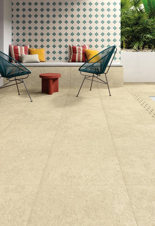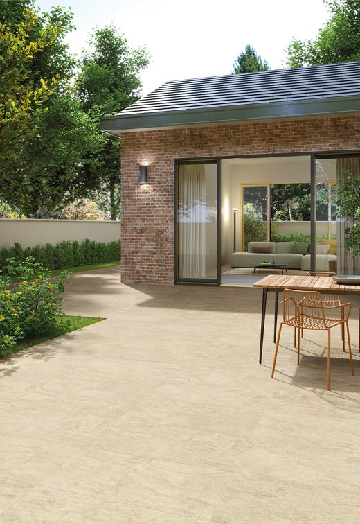 В коллекции доступна ректифицированная плитка нескольких крупных форматов в зависимости от выбранного узора (45x90, 80x80 и 60x120). Увеличенная толщина плитки позволяет использовать ее в качестве напольных покрытий под открытым небом (в саду, вокруг бассейна, на террасе), а также для облицовки вентилируемых и клеевых фасадов.