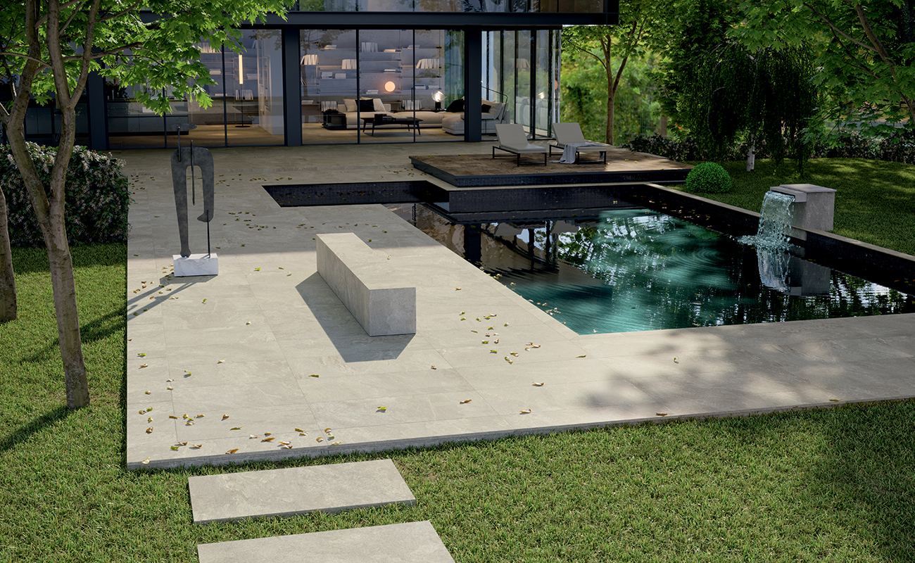 Новое эксклюзивное предложение из керамогранита с эффектом камня для создания безопасных, изысканных и привлекательных пространств с эффектом непрерывности между помещением и улицей