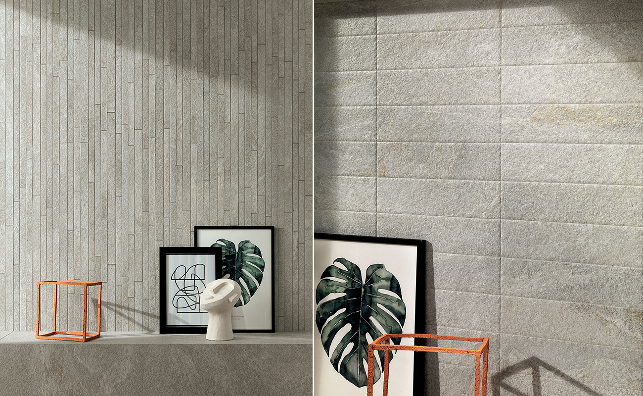 Предложение варьируется от плитки большого размера 60x120 см толщиной 2 см для помещений и улицы до плитки-кирпичика размером 7,5x30 см, кромки которой тщательно разрабатывались для воспроизведения традиционного сечения кварцита и воссоздания изысканного урбанистического эффекта или оформления современных неформальных настенных ниш.