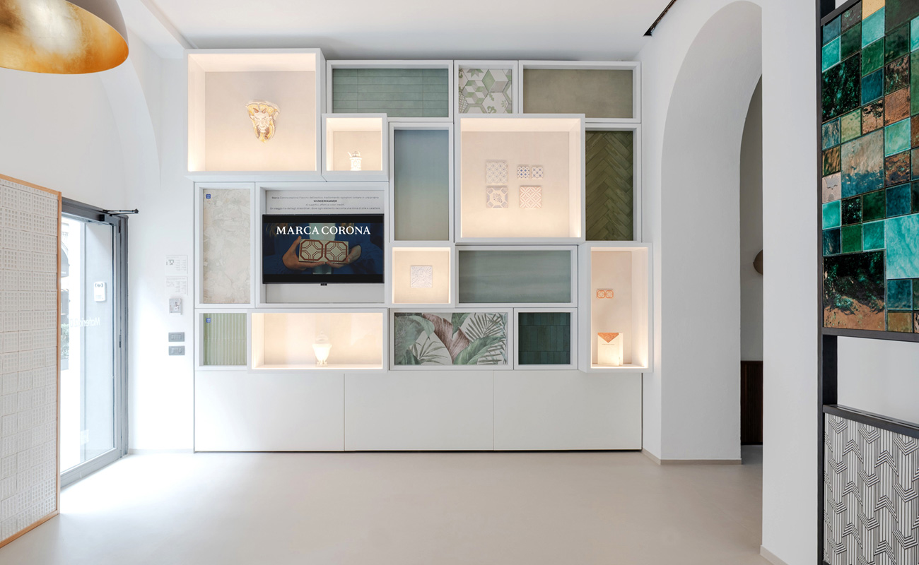 В Милане, Porta Nuova, находится библиотека материалов Materia 2.0. Именно здесь мы решили разработать интерьеры и инсталляции, посвященные вселенной Marca Corona, по случаю Milano Design Week и Fuorisalone 2025.