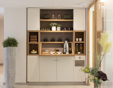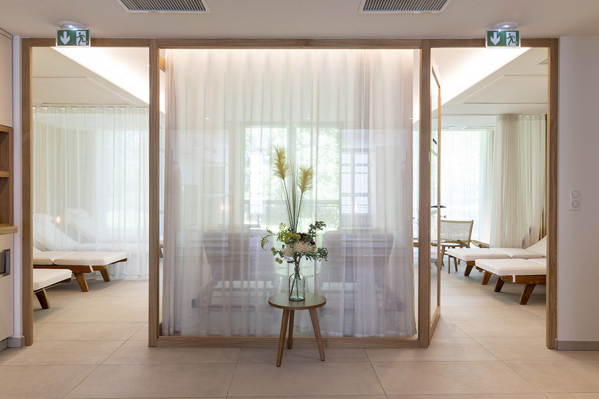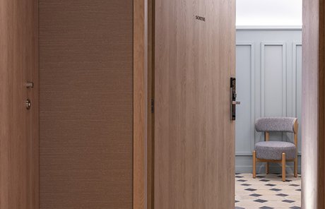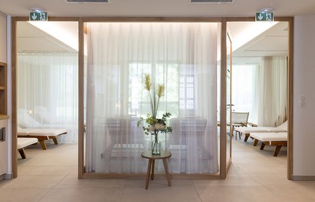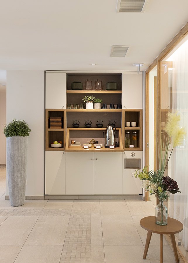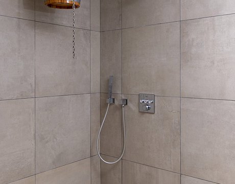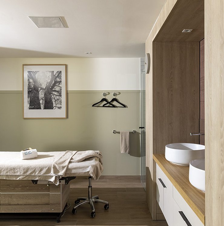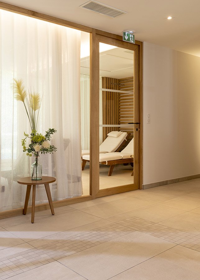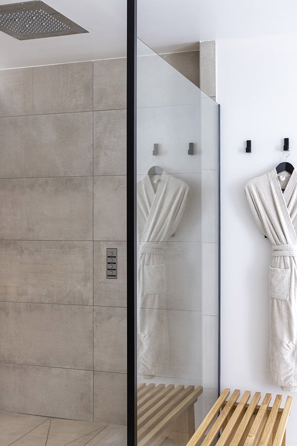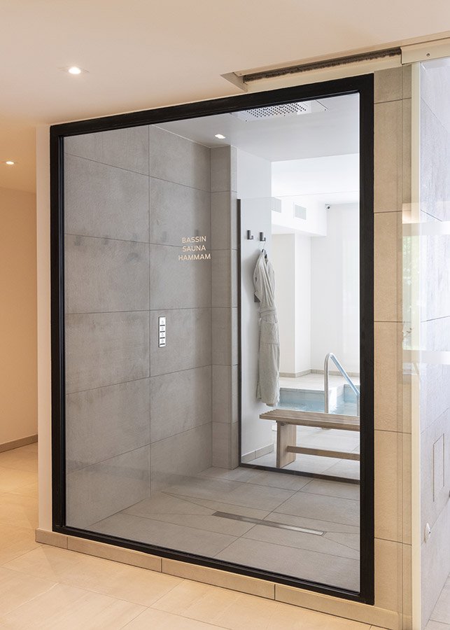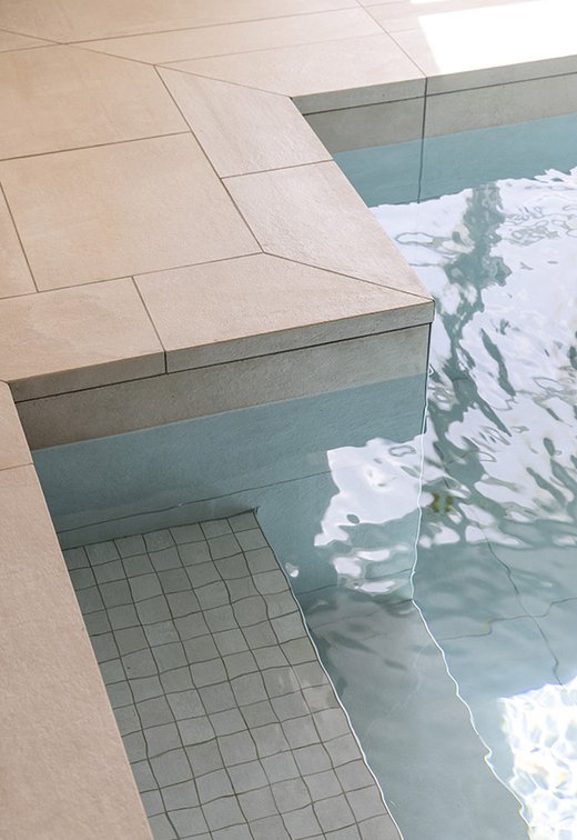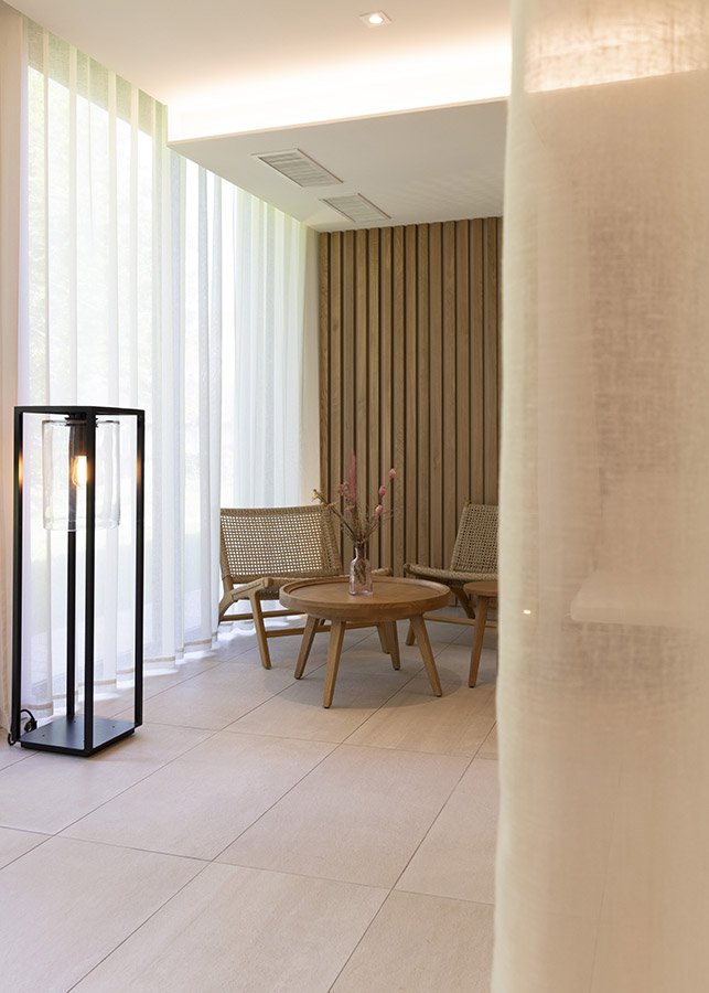 Во всем Спа-центре, от крытого бассейна до зоны релаксации, от раздевалок до душевых, в отделке можно встретить коллекцию StoneOne – напольную плитку из керамогранита с эффектом натурального камня, зрительно соединяющую все помещения. Плитка Stoneone в структурированном варианте гарантирует максимальную безопасность с точки зрения противоскольжения также и на кромке бассейна и в среде, где постоянно присутствует вода. Напольное покрытие Marca Corona также гарантирует высокую устойчивость к царапинам и ударам, максимальную практичность в уборке и безупречную гигиеничность, поскольку оно выполнено из высококачественного керамического гранита, водонепроницаемого и устойчивого к плесени и бактериям.