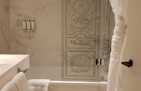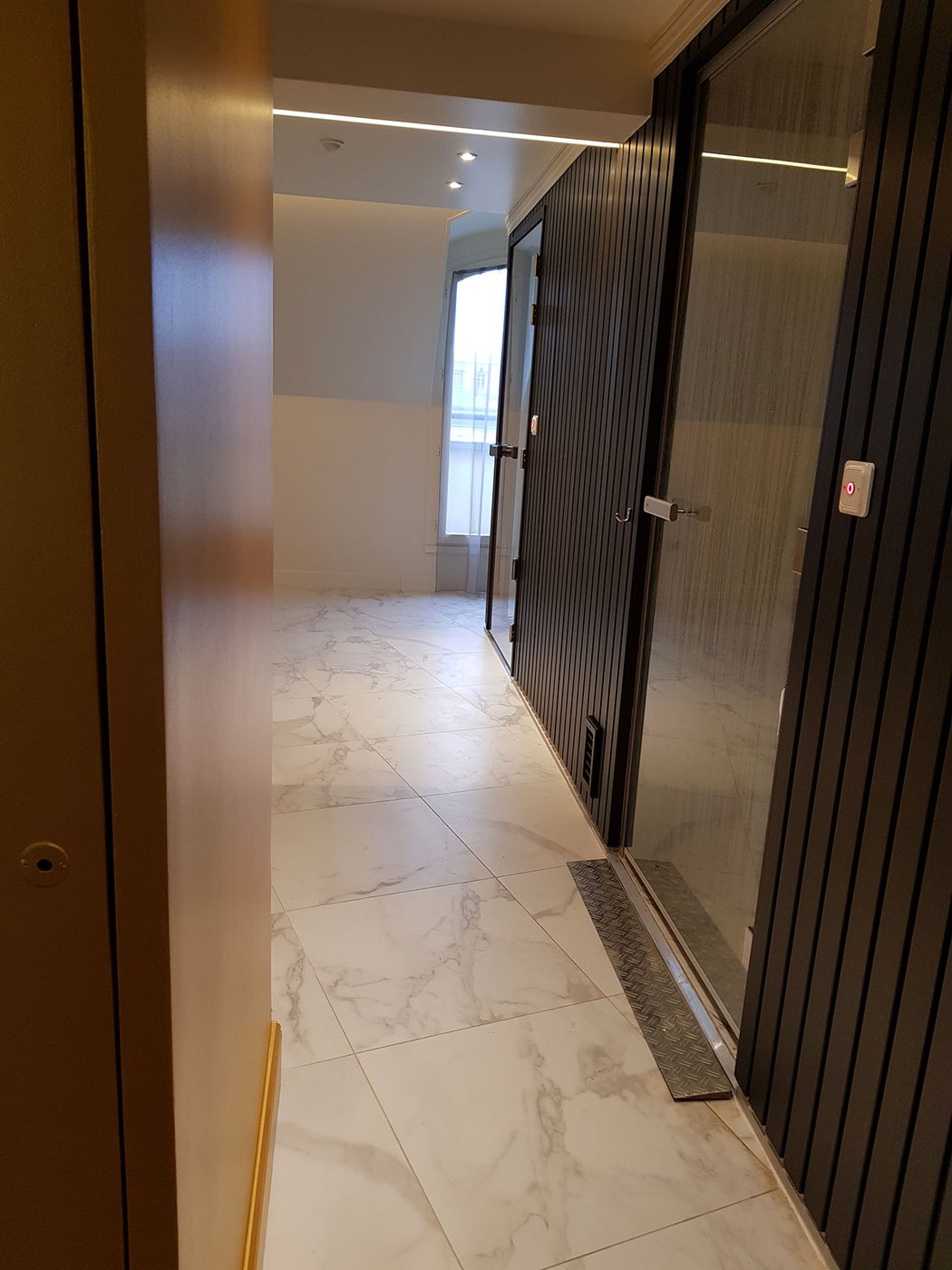 Для реконструкции этого знаменитого отеля в самом центре Парижа были выбраны две коллекции Marca Corona: мраморы Deluxe и Newluxe трансформируют зону Wellness, Spa и ванные комнаты всех частных сьютов в пространства насколько эксклюзивные и яркие, настолько же практичные и безопасные. На площади 3500 кв. метров здания главными элементами, бесспорно, являются полы, настенная облицовка и мозаичные плитки Marca Corona!