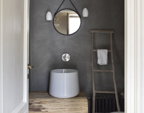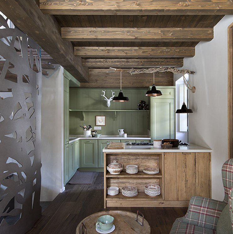 Учитывая поставленные цели, архитектор Скафиди тщательно проработал идеальное сочетание различных цветов и материалов, создав настоящую жемчужину дизайна интерьера: открытые деревянные балки и мебель нейтрального цвета прекрасно сочетаются с пастельными тонами стен и более современными, привлекательными деталями и отделкой, такими как элегантный открытый душ или эксклюзивный стальной камин - сердце дома.