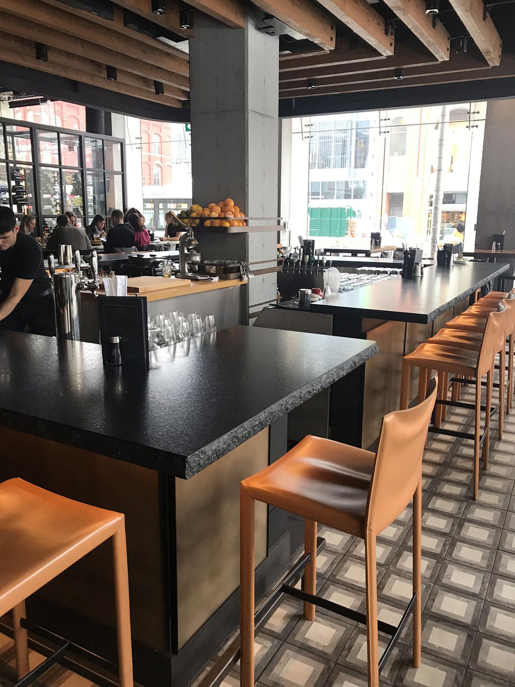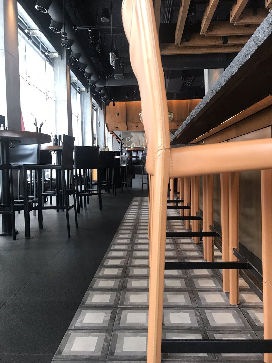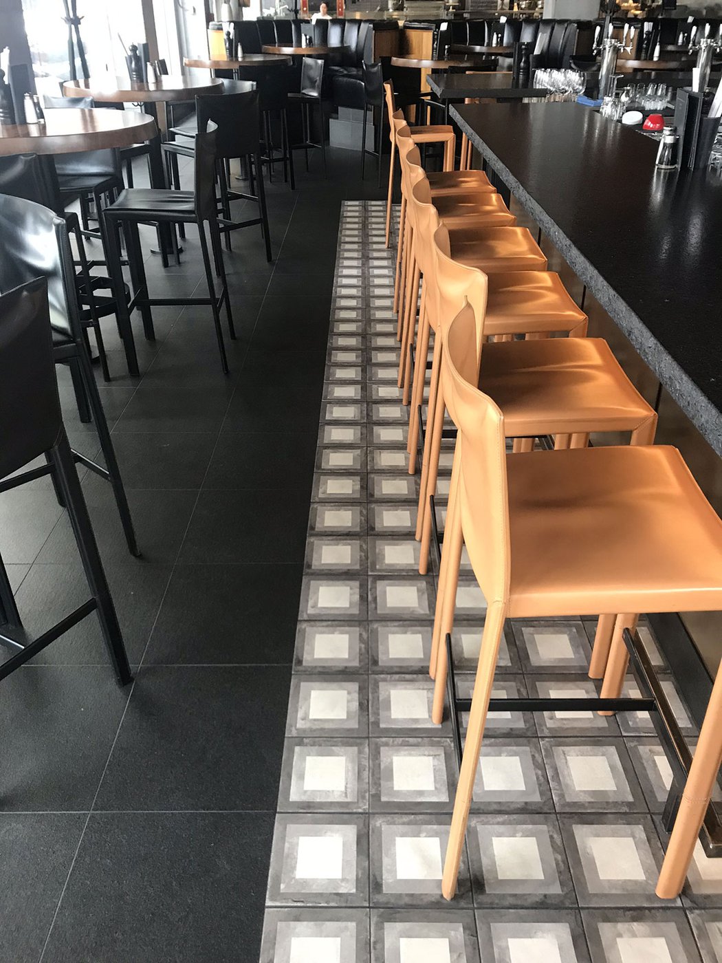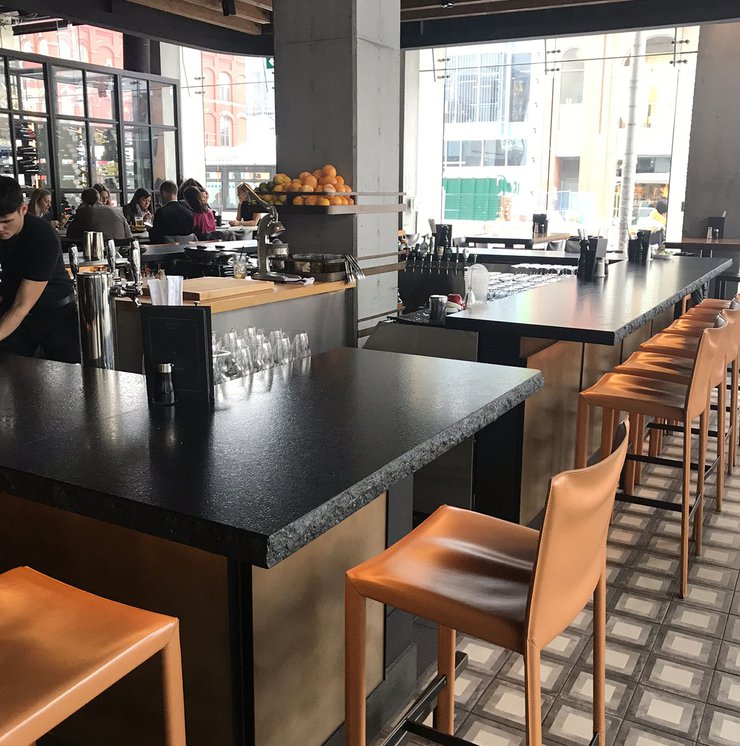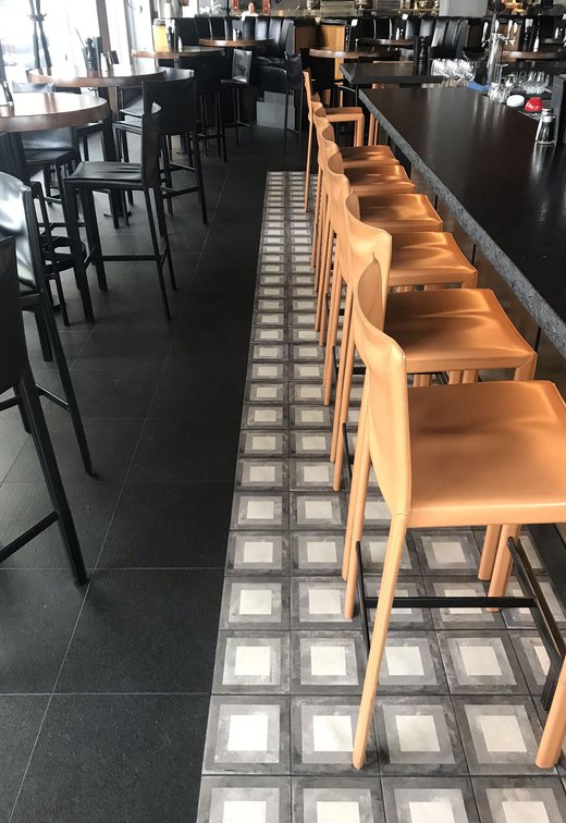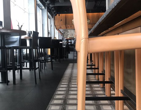 Сеть ресторанов Joey выбрала коллекцию Terra, чтобы придать современный и изысканный характер своему новому ресторану в Оттаве. Плитка «cementine» Marca Corona с элегантным декором Quadrato в пыльных тонах использована для отделки пола по всему залу и прекрасно сочетается с настенной облицовкой brick и предметами обстановки в стиле «индастриал».