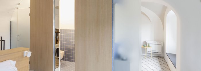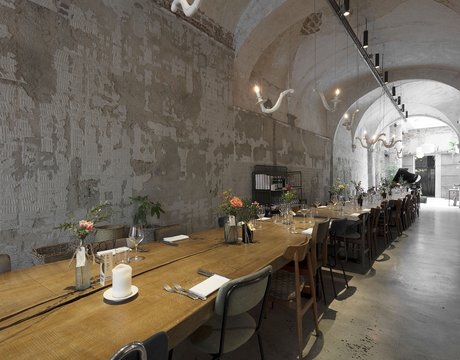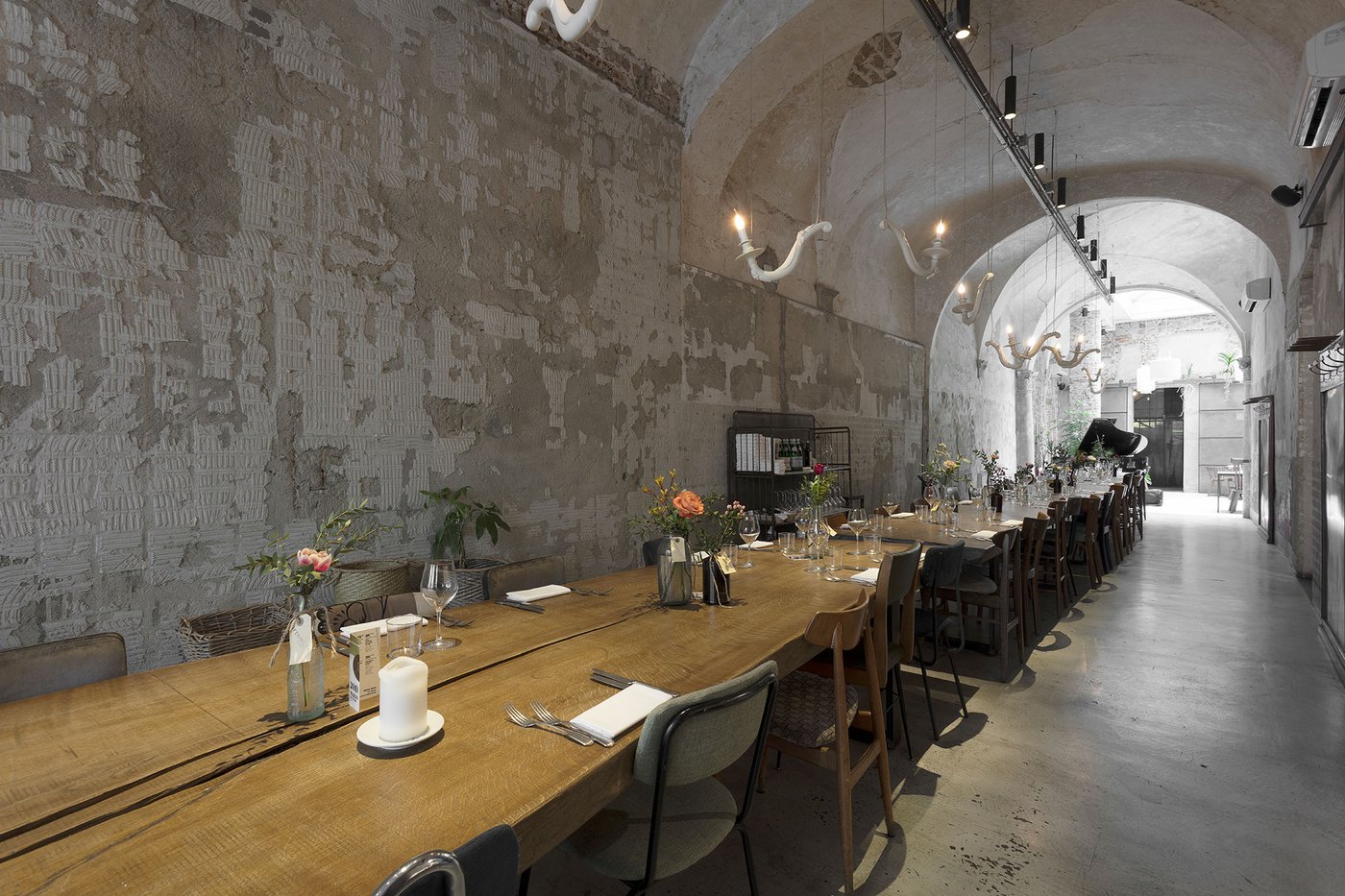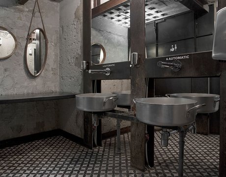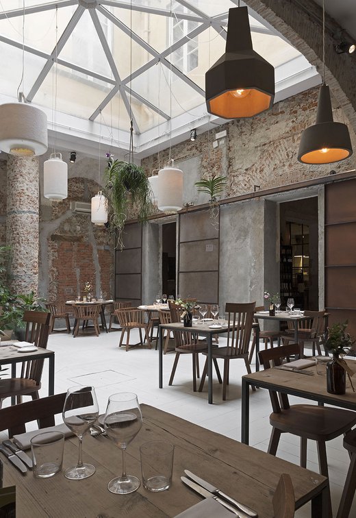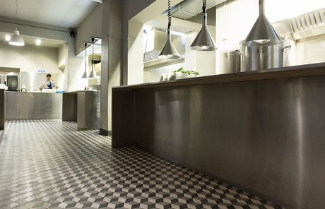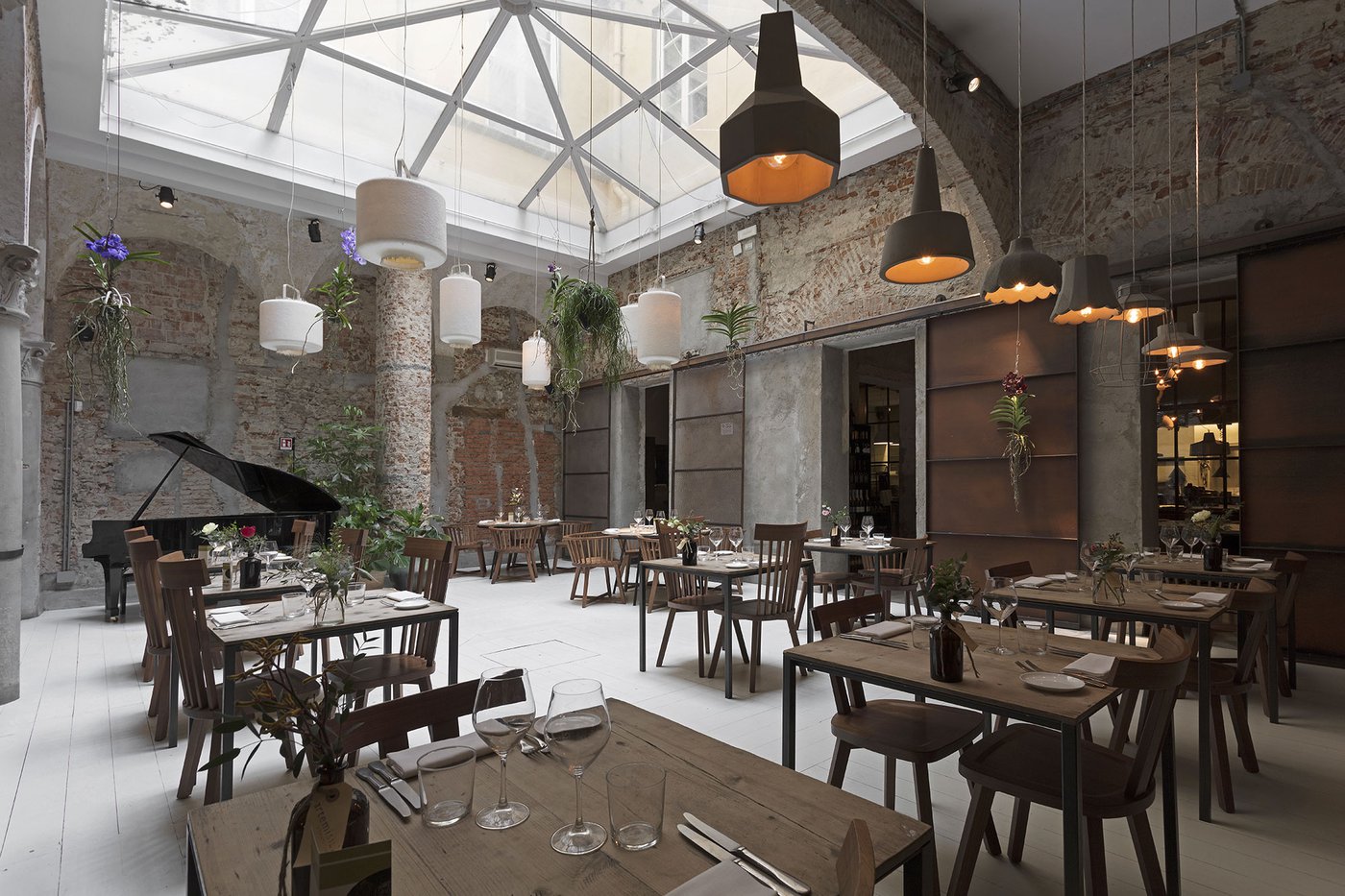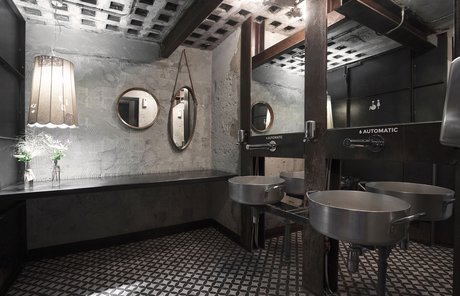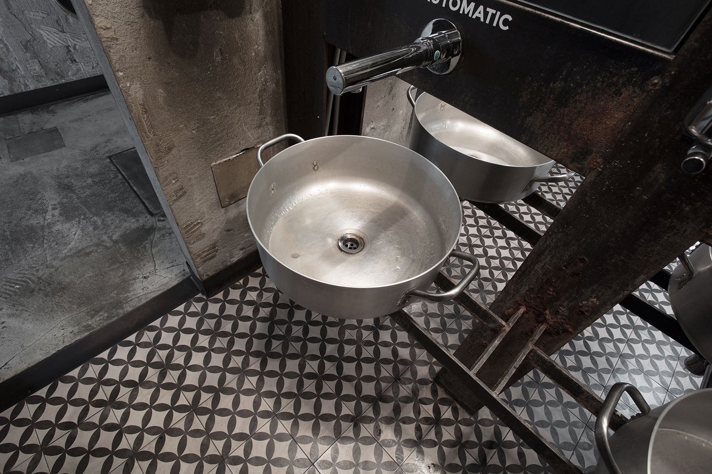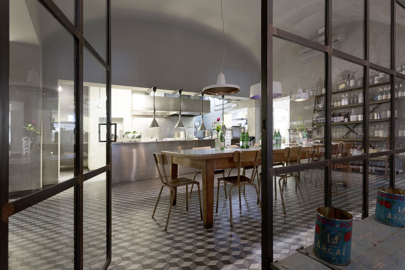 Архитекторы Балдини из студии Q-Bic положились на компанию Marca Corona в воссоздании атмосферы в классическом стиле и выбрали малоформатную плитку в пыльных тонах серии Terra. Открытая кухня, выходящая в ресторанный зал, оформлена плиткой шестиугольного формата и декором Cubo, напоминающими типичные формы и мотивы флорентийских палаццо девятнадцатого века. В зоне туалета, напротив, использована мелкая квадратная плитка с утонченным узором Astro. В сочетании с витражным остеклением в стиле «индастриал», металлическими деталями, изысканными осветительными приборами и цветочными композициями от Artemisia, плитка «cementine» серии Terra придают помещению неподдельный дизайнерских дух, всегда столь ценимый во Флоренции.