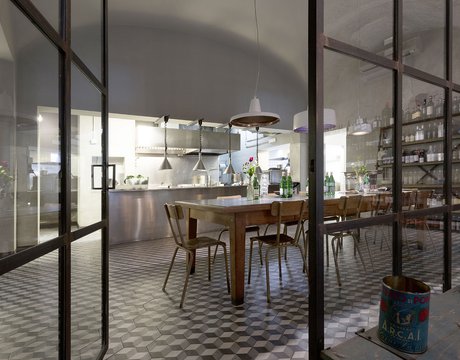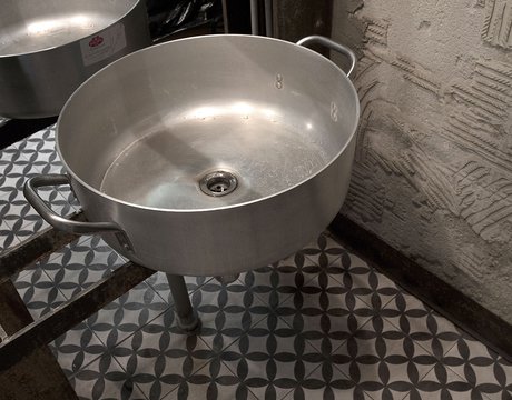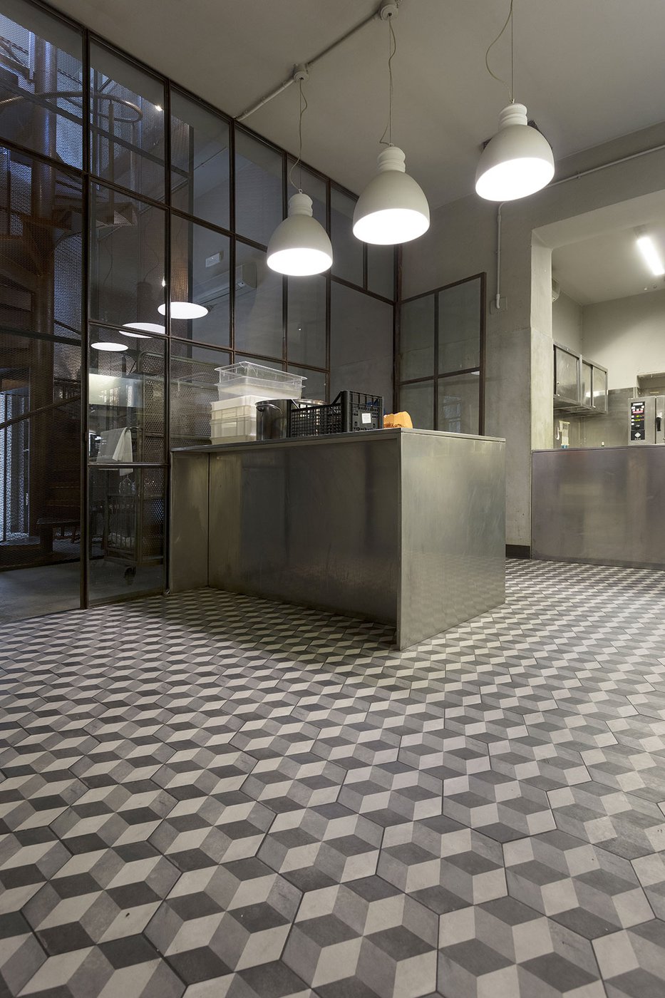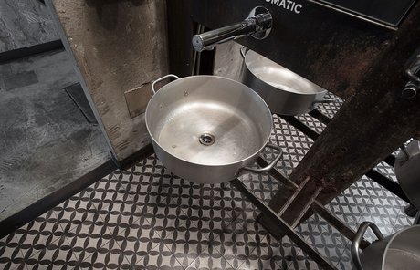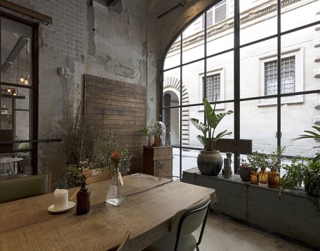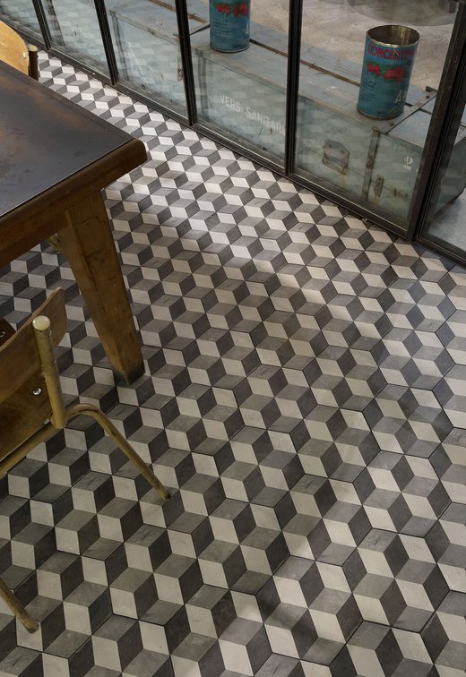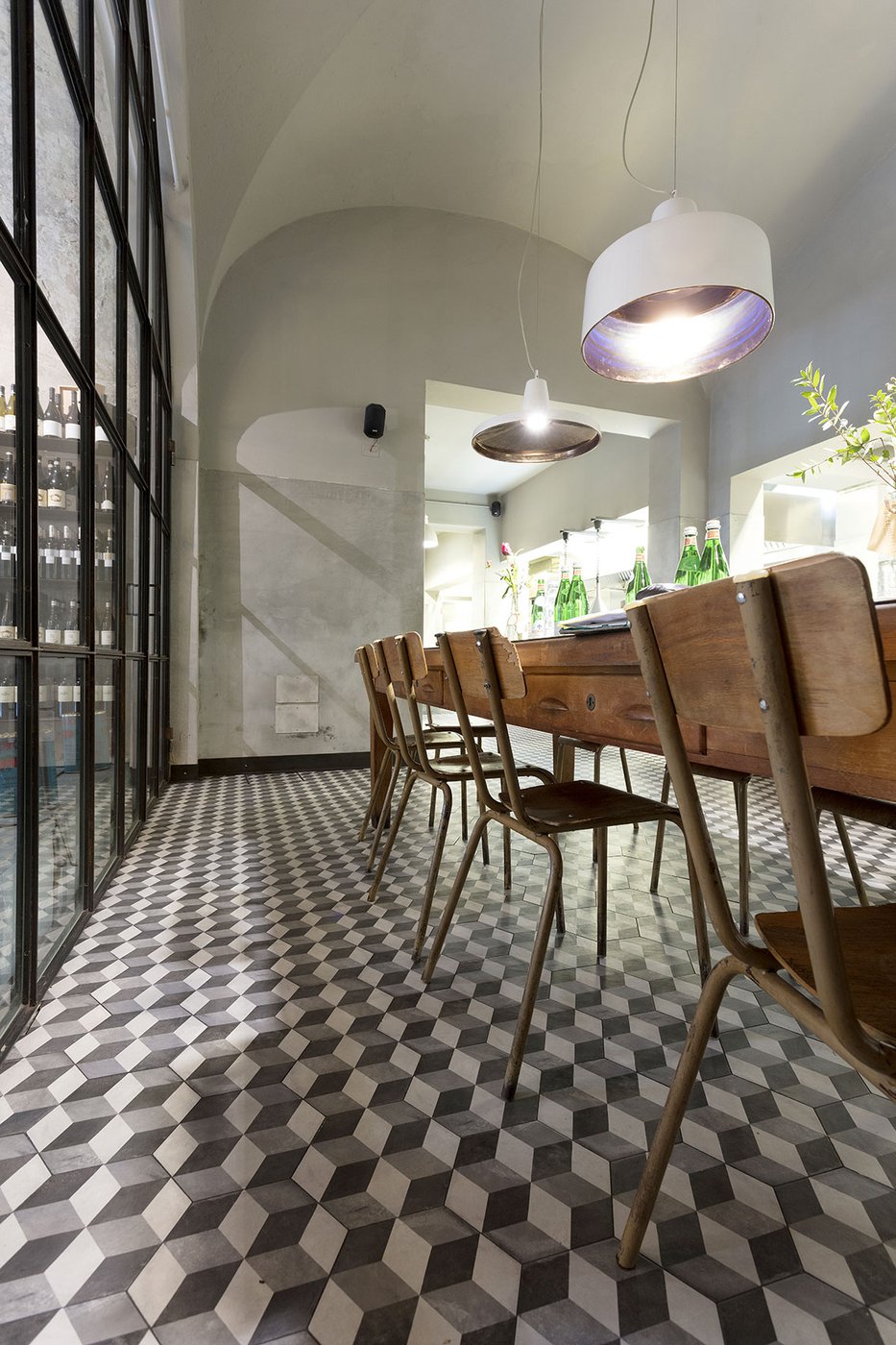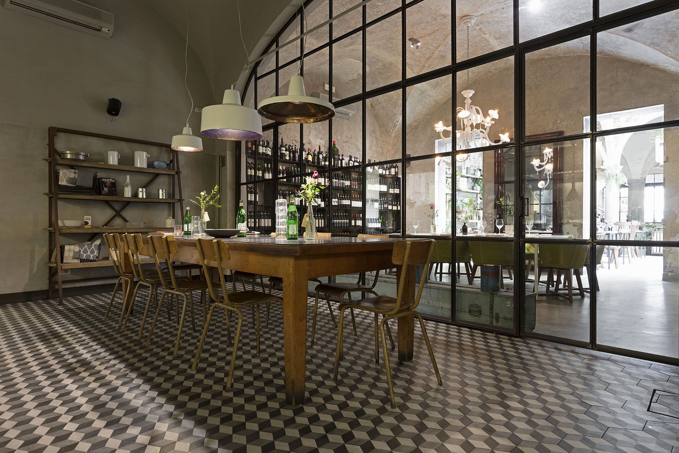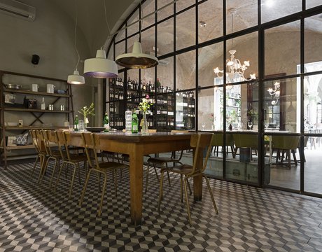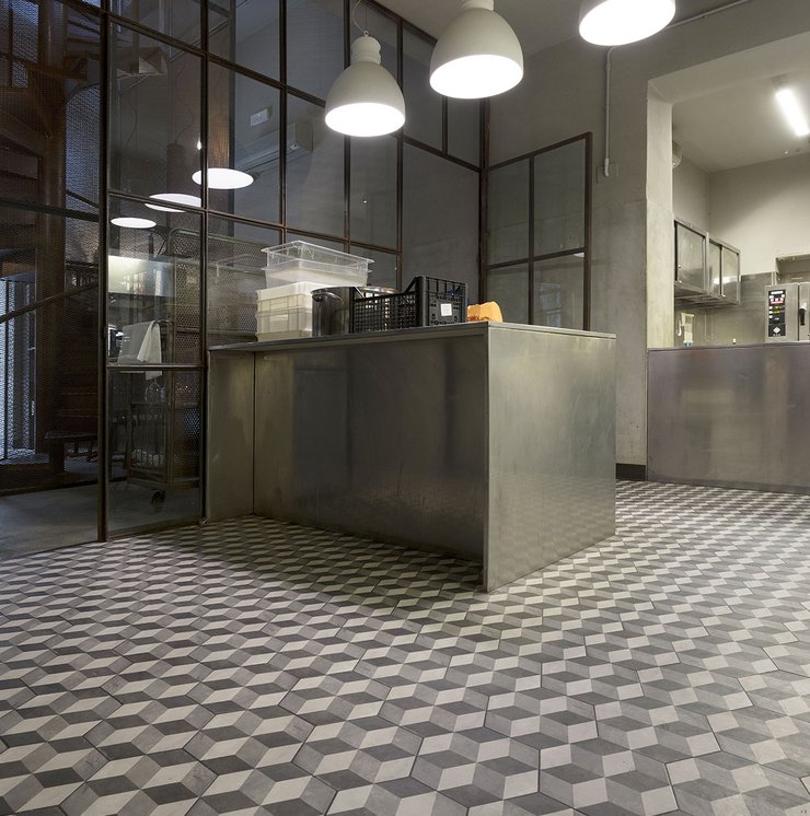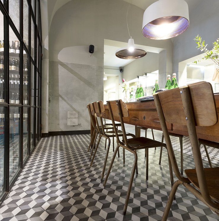 Для частичной реконструкции торгового центра La Ménagère была выбрана плитка «cementine» серии Terra, прекрасно подходящая для того, чтобы подчеркнуть достоинства этого исторического места, где традиции и современность ведут гармоничный диалог. Обстановка и атмосфера воздают должное первоначальному стилю помещения самого старого магазина хозяйственных товаров во Флоренции, отсылая нас к атмосфере домашнего тепла и уюта. Многофункциональный центр, в котором одновременно размещаются бистро, бар, магазин цветов и хозяйственных товаров, настоятельно требовал применения прочных, гигиеничных и надежных материалов. Дерево и цементная смола, выбранные на начальном этапе реконструкции, не выдержали воздействия постоянных нагрузок: спустя всего несколько месяцев пришлось провести повторные работы, чтобы заменить уже истершиеся полы в туалетной комнате и на кухне и уложить новое покрытие из керамического гранита, обладающего более высокими техническими и эстетическими характеристиками.