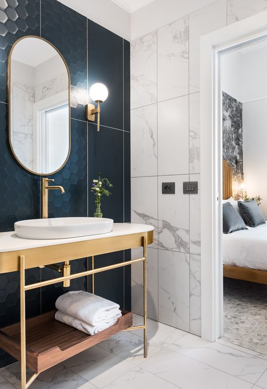 Аристократический район Пьяцца Навона вызывает ассоциации с насыщенными цветами и ценными материалами. Предлагаемые здесь апартаменты отличаются роскошью и утонченностью Рима ушедших времен: теплые тона, арочные стены, дизайнерская мебель, изысканные предметы искусства и тонкая отделка создают удивительные и эксклюзивные пространства. Высокий уровень элегантности и стиля особенно заметен в ванной комнате благодаря выбору коллекции Deluxe. Керамогранит с эффектом мрамора в изысканном цвете White с невероятными техническими характеристиками способен противостоять течению времени и износу, сохраняя при этом свою красоту неизменной.
