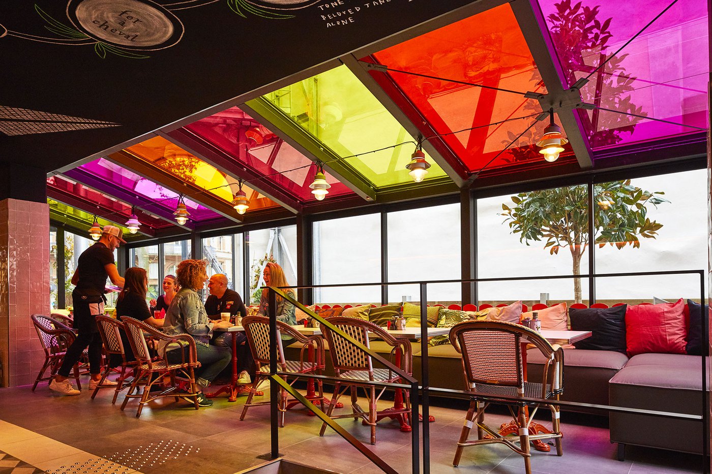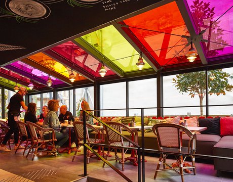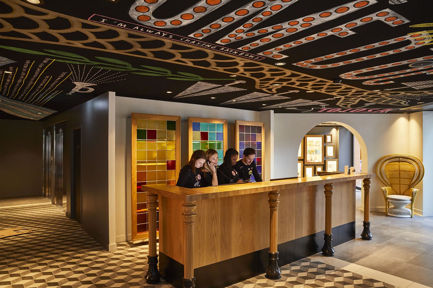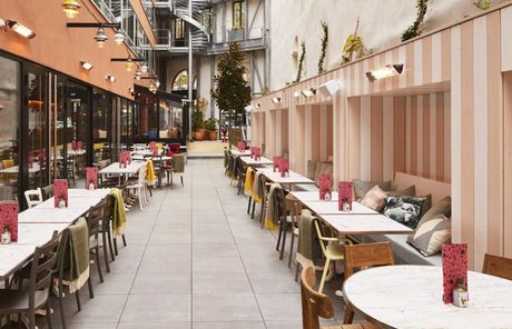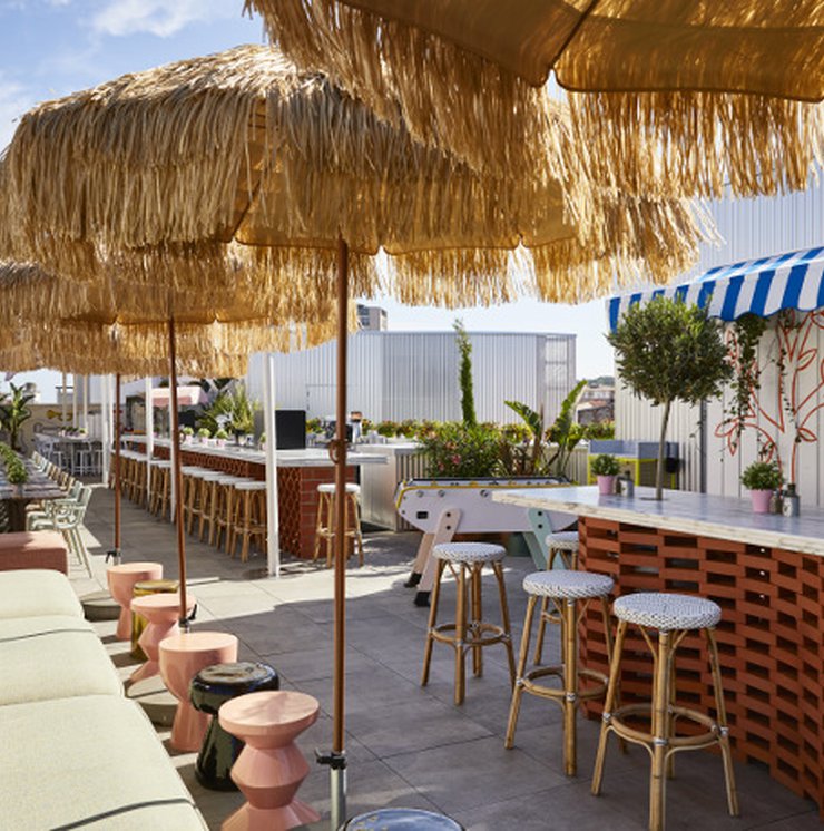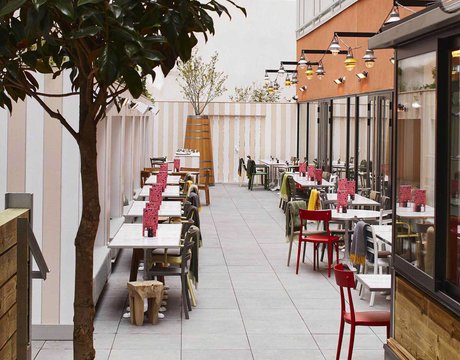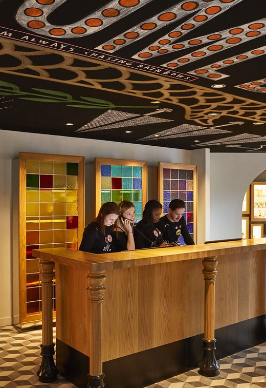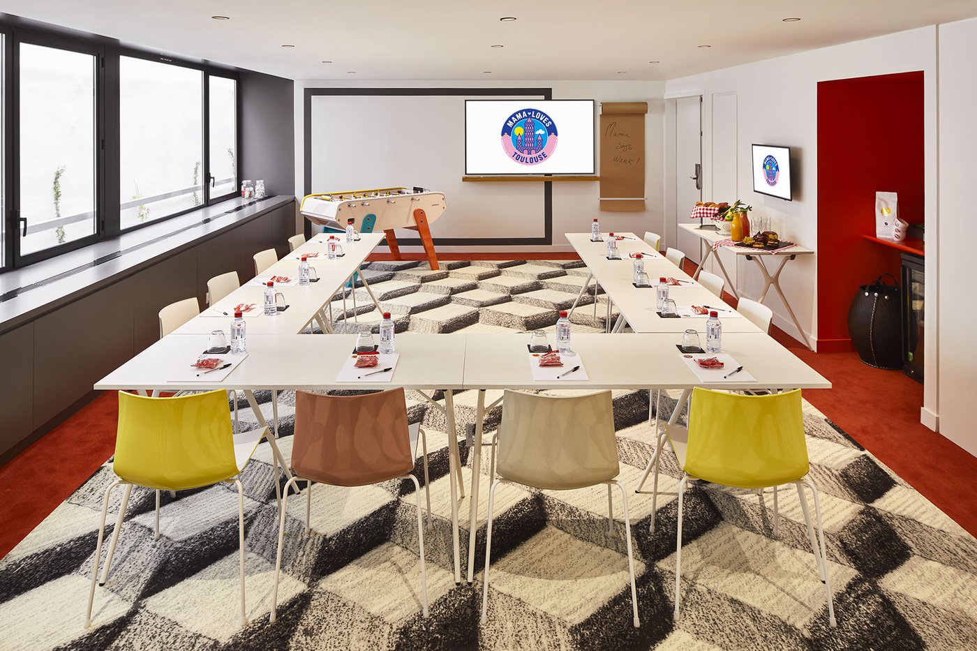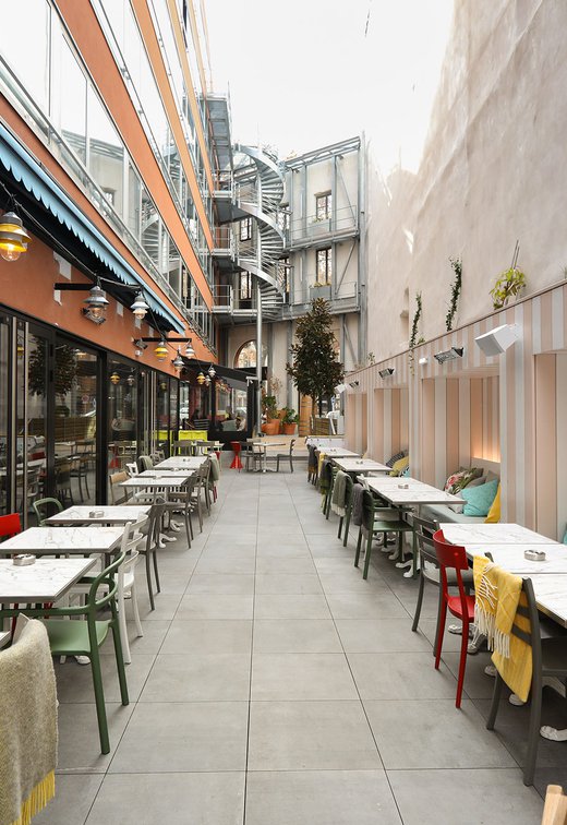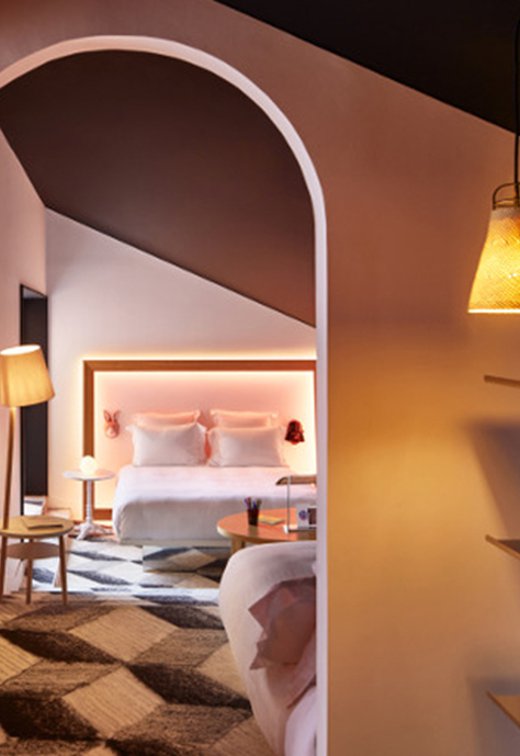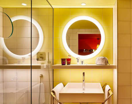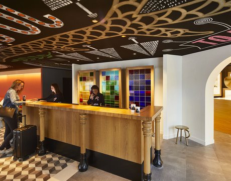 Знаменитая сеть Mama Shelter выбрала студию Тьери Гоген для проектирования своего нового дизайн-отеля в Тулузе. Эксцентричное и трендовое сооружение как нельзя лучше подходит для применения коллекций Marca Corona! Более 5000 квадратных метров здания характеризуются яркими цветами, задорными паттернами и легким живописным мебельным убранством. В холле, в ресторане и других местах общего пользования метлахская плитка Terra чередуется с поверхностями StoneOne, рождая приятную игру геометрий. В ванных комнатах номеров снова делается ставка на цвет с использованием плитки Color Mix, в белой и желтой версии. Для создания стиля и придания прочности открытым пространствам опять же незаменимым стал керамический гранит с эффектом камня StoneOne, предложенный в утолщенной версии в различных оттенках. Не забудем сказать и о баре на крыше, roof-top bar: выразительная графика, цветные пуфы и соломенные навесы трансформируют панорамную террасу в беззаботный оазис с тропическим привкусом!
