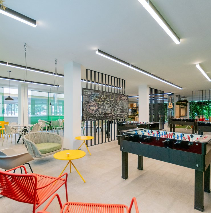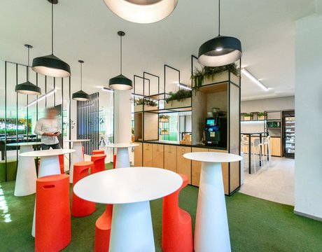 Весь комплекс, реализованный архитектурной студией BIA-@rch, фактически следует принципам гибкого офиса: метод проектирования, который ставит работника и его потребности в центр, улучшая корпоративное и индивидуальное благополучие и производительность. По этой причине первостепенное внимание уделялось энергоэффективности всего комплекса и созданию комфортной и многофункциональной среды, способной стимулировать творчество, изобретательность и общение между людьми, чтобы воплотить в жизнь все более амбициозные идеи и проекты.