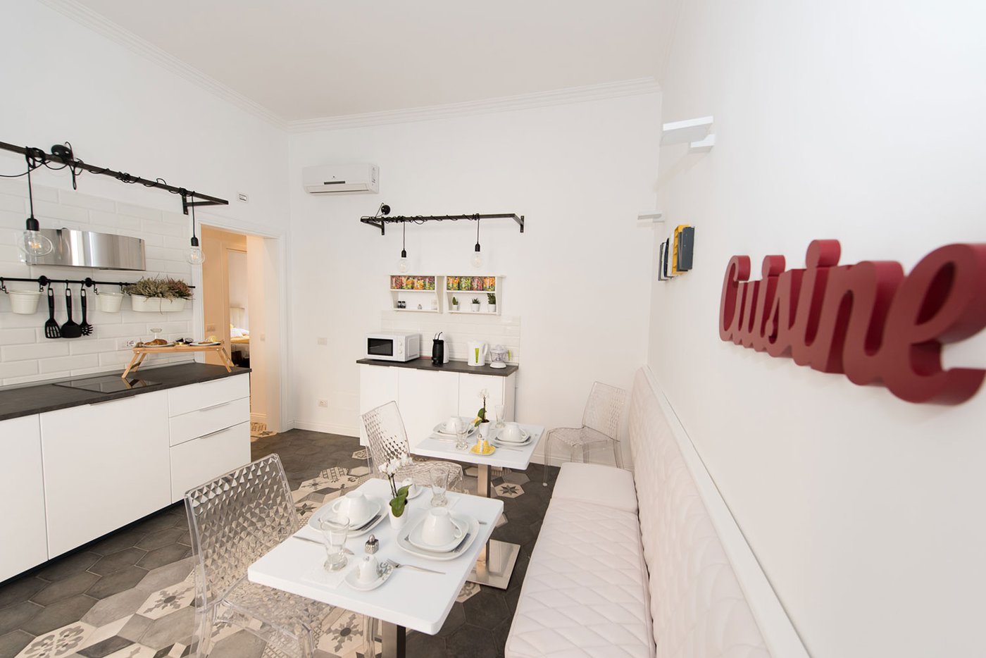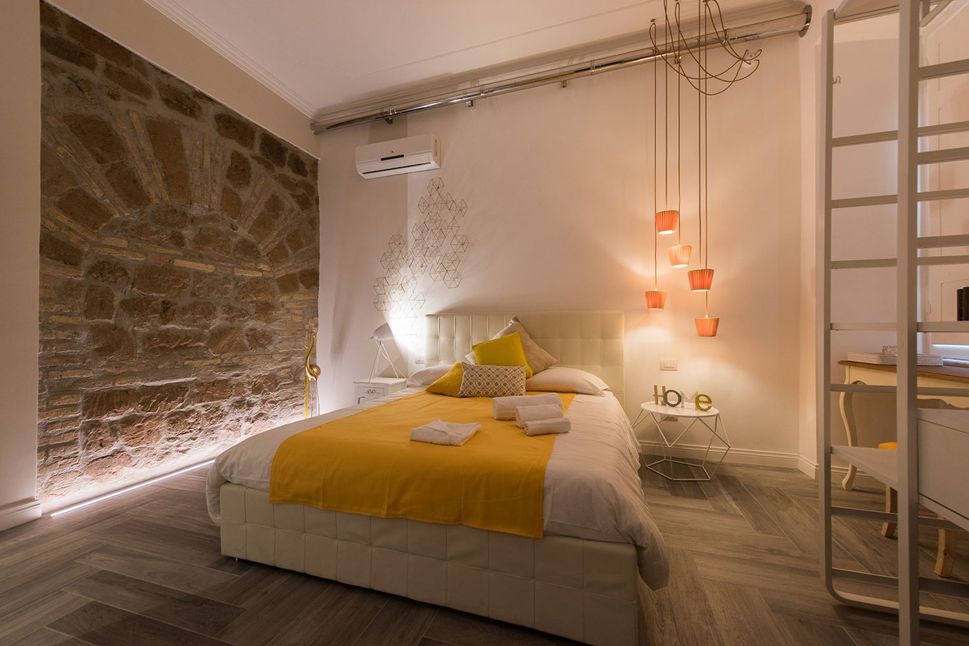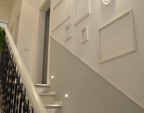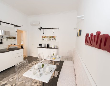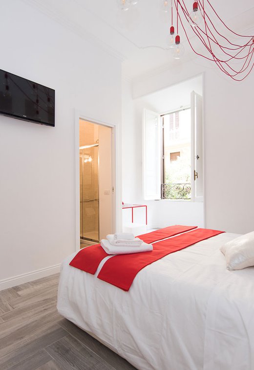 Небольшой бутик-отель недалеко от Вилла Боргезе в Риме, современная и неформальная атмосфера благодаря интерьеру в минималистском стиле, ярким цветовым штрихам и декорированной плитке «cementine» серии Terra. Шестиугольная плитка производства компании Marca Corona встречает гостей у самого входа и сопровождает их по всему зданию. У стойки администратора, на общей кухне и в коридорах, ведущих в частные номера мы видим оригинальные геометрические рисунки коллекции Mix Decori, обрамленные элегантным фоном серии Nero и Antracite.